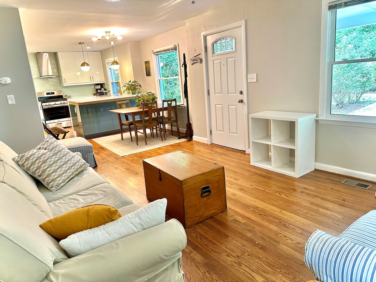 Stylish & newly renovated home in quiet neighborhood ~ walking distance to Brookside bodega and Person St. district. It promises a relaxing retreat at a prime location, less than 5 mins away from downtown ~ central to all Raleigh has to offer. The amenity list will prove to make a comfortable stay: -Comfortable bed -Fully equipped kitchen with a luxury stove -Smart TVs in each room -Private outdoor entertaining area