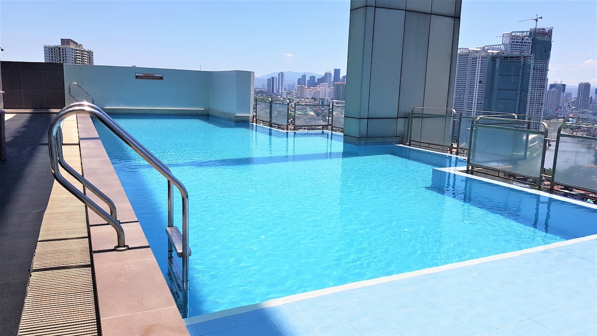 Unit Studio Bersaiz Besar Baharu di Spire! 2 katil bersaiz Queen sesuai untuk keluarga dan kumpulan! Dapatkan percutian perjalanan anda yang sangat diperlukan di unit ini dengan TV Pintar 55"kami yang besar dengan Netflix, WiFi 100Mbps pantas, penyaman udara sejuk dan mesin basuh di unit ini! Century mall and parking is just next door and the Poblacion entertainment area is just outside our doors!