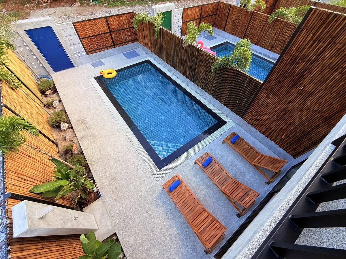 33 meter persegi. Gunakan banglo 1 Bilik Tidur, 1 katil bersaiz king untuk 2 orang, bilik mandi peribadi separa terbuka dengan pancuran hujan, terletak di taman tropika, privasi untuk penginapan santai anda dan nikmati aktiviti pada masa yang sama. Pendingin hawa, air panas-sejuk, set linen kemudahan, jubah mandi, pengering rambut, peti sejuk, cerek, kopi, Wi-Fi percuma, tempat letak kenderaan percuma Polisi Kanak-kanak Kanak-kanak berumur 4 tahun ke atas dibenarkan, kanak-kanak 4-10 tahun boleh menginap dengan harga THB400/n 11 tahun ke atas dengan harga THB700/n apabila menggunakan katil sedia ada, termasuk sarapan.