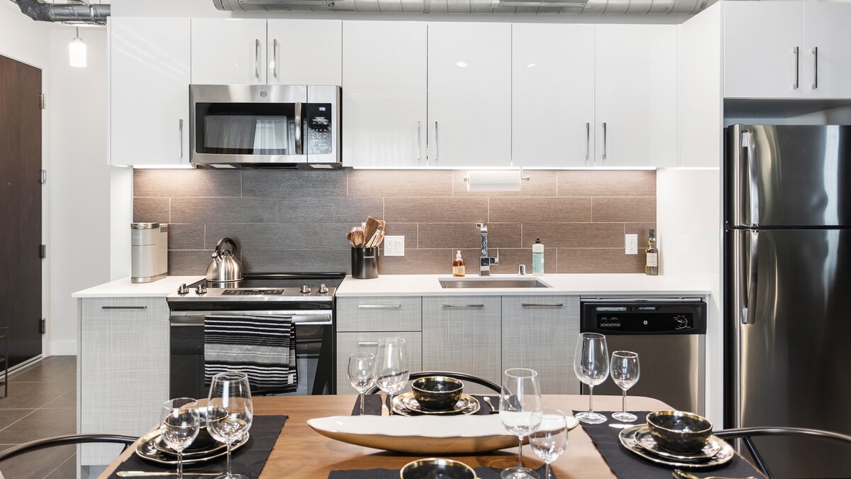 Alami kehidupan mewah di pusat bandar LA di bangunan tinggi satu bilik tidur kami yang bergaya. Kami telah mencipta ruang ini dengan memikirkan tetamu kami. Nikmati kertas dinding Gucci dan perabot pereka vintaj di seluruh kondominium. Selain itu, kami telah menyertakan kemudahan mewah, seperti katil king yang sangat selesa, kolam renang atas bumbung, tab mandi air panas dan teres. Lokasi kami sangat sesuai untuk berjalan kaki dengan skor 97. Anda hanya beberapa langkah dari restoran, bar, kedai dan teater terbaik yang ditawarkan oleh DTLA.
