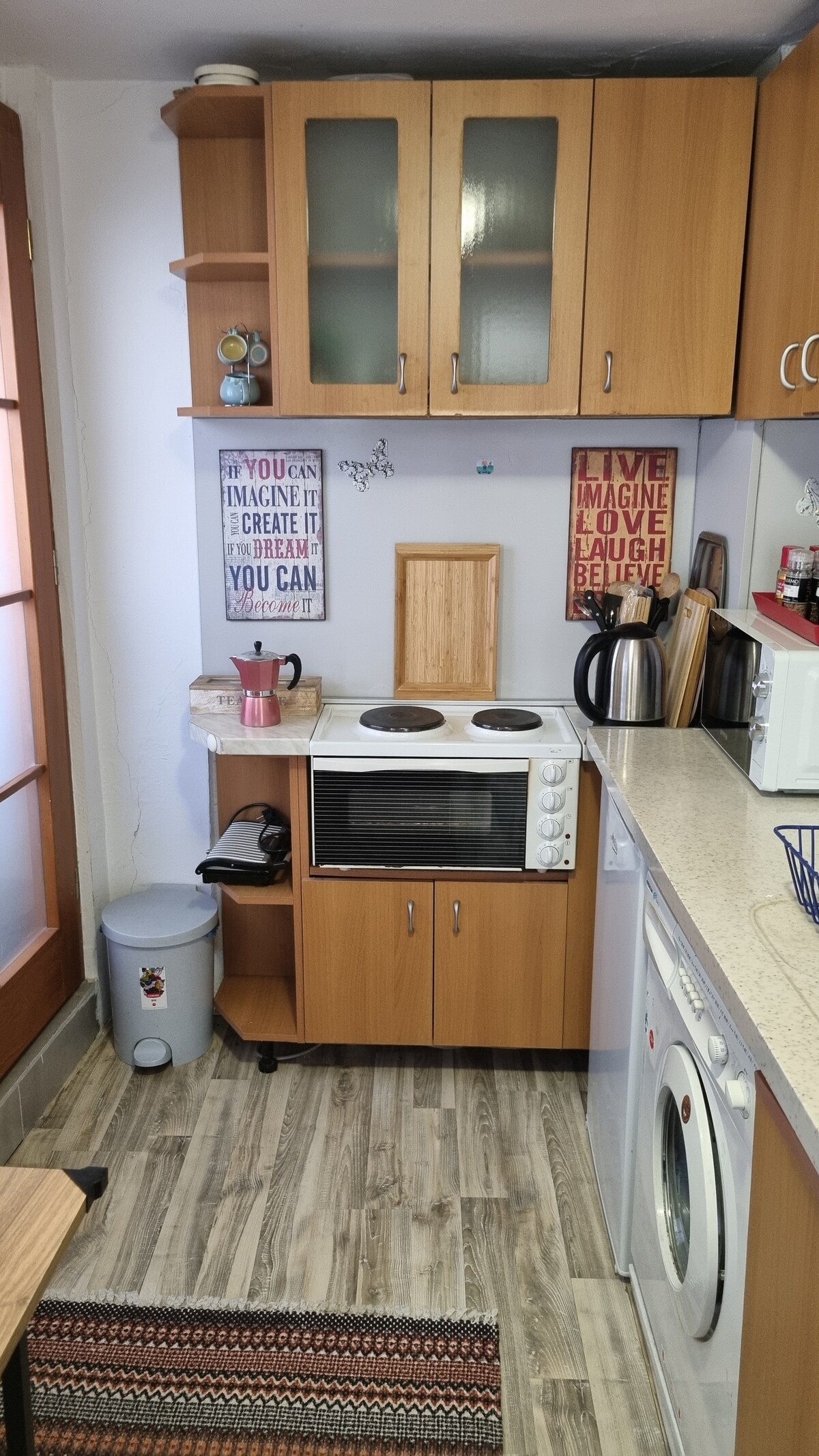 Menginap di apartmen atas kami yang cerah dengan dua balkoni, terletak di tengah-tengah bandar. Rumah ini mempunyai pintu masuk berasingan untuk privasi: kawasan atas mempunyai ruang tamu yang besar, bilik tidur yang selesa, dan dapur yang serba lengkap. Bilik mandi juga termasuk mesin basuh. Pilihan makanan berdekatan (3 minit berjalan kaki) dan tarikan pusat bandar hanya 7 minit berjalan kaki. Ia mempunyai AC. Perhatian: Unit bawah dihuni oleh seorang nenek yang mesra dengan anak saudaranya. Beritahu kami jika anda memerlukan maklumat lanjut :)