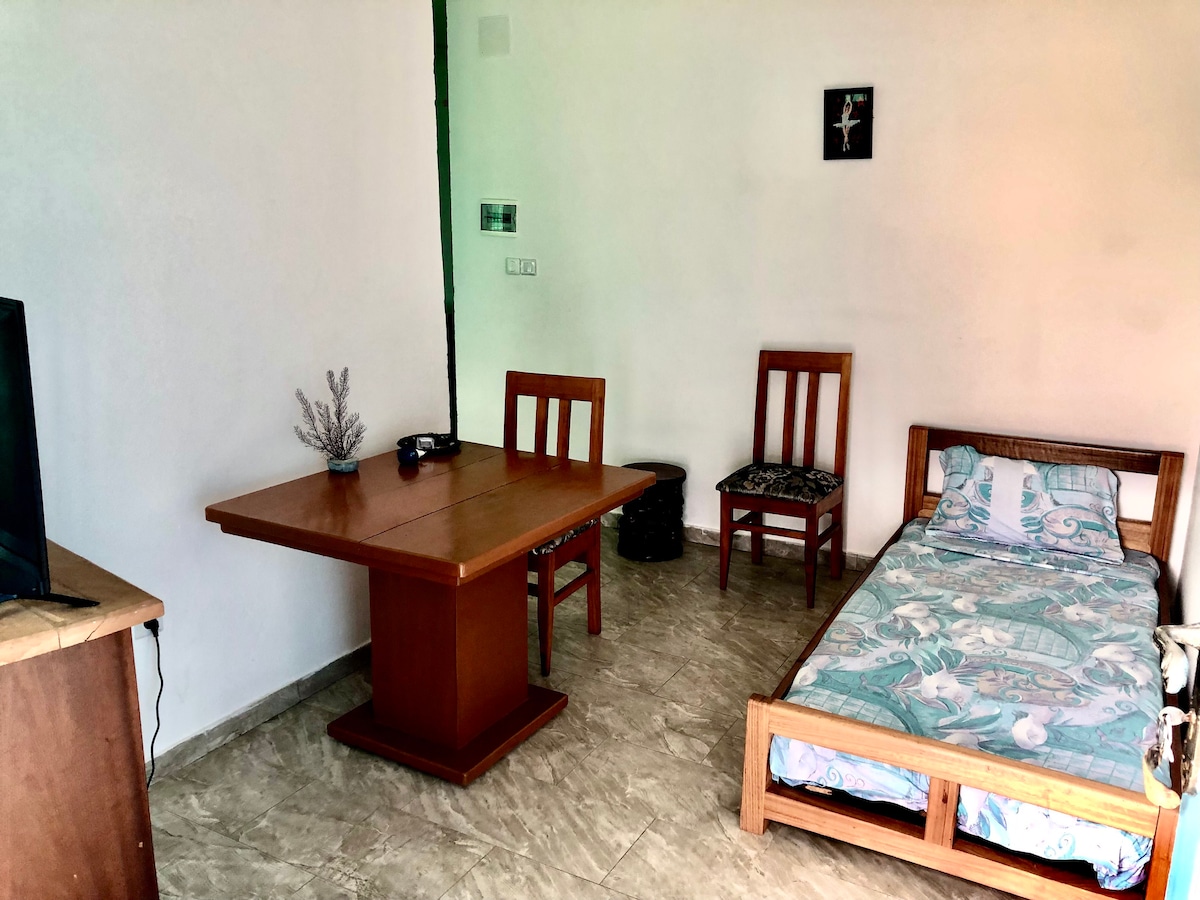 Détendez-vous dans ce logement unique et tranquille. Il s’agit d’un t2 avec vue sur jardin. 1 chambre climatisée avec 1 lit 🛌 double, 1 canapé et une penderie ; 1 petit salon avec 1 table, 1 lit simple, 2 chaises et une télévision 📺 ; Salle de bain ; Toilettes ; Kitchenette au gaz ; Eau chaude .