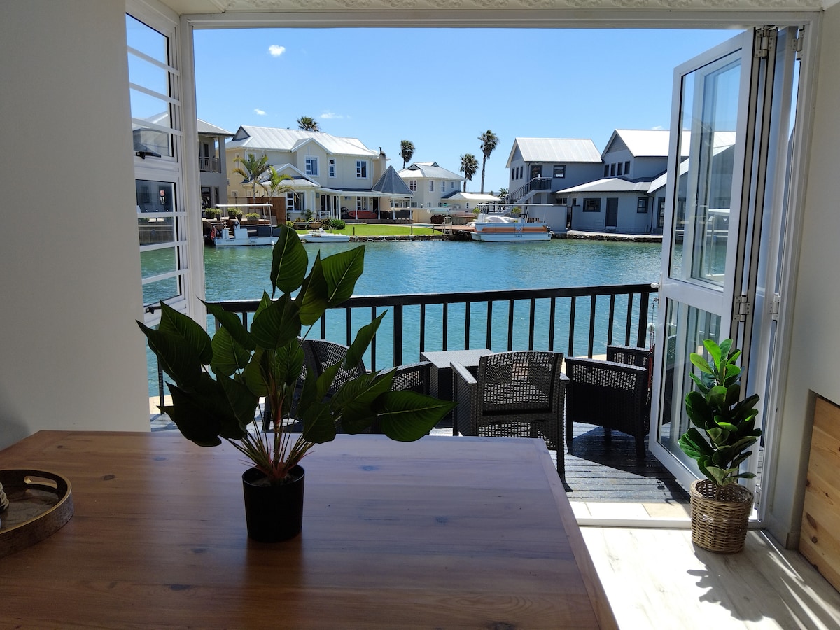 Rumah luas di tepi terusan dengan empat bilik tidur en-suite—tiga di tingkat atas dan satu di tingkat bawah. Rumah ini mempunyai dapur terbuka yang besar, ruang bar dan braai, ruang makan dan ruang rehat. Tingkat atas termasuk ruang matahari dan ruang TV terbuka dengan inverter yang membekalkan kuasa kepada Wi-Fi, TV dan pengecasan peranti. Nikmati matahari terbenam yang indah, akses berjalan kaki yang mudah ke Sungai Kromme, jeti persendirian untuk bot anda dan sebuah garaj. Rumah percutian yang sempurna untuk keluarga dan rakan-rakan.