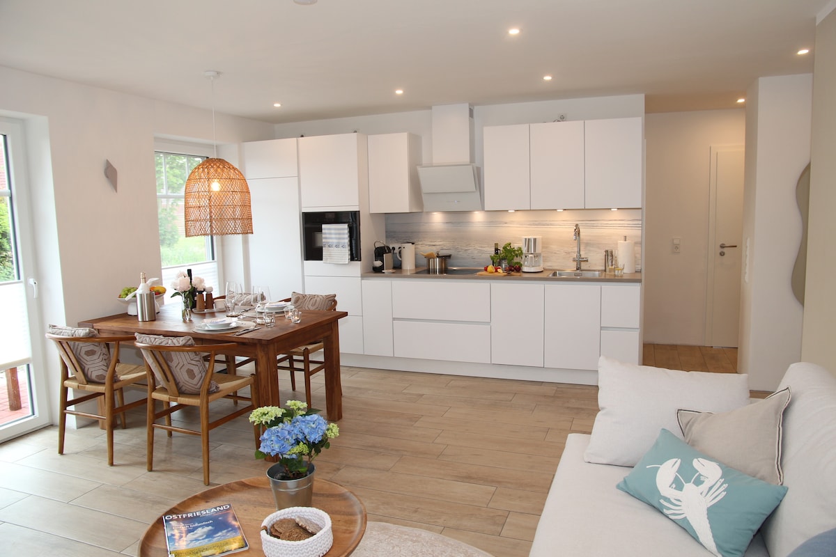 Novo10 - Percutian anda di East Frisia. Bersantai - di ruang yang tenang dan bergaya ini. Di tengah-tengah Frisia Timur di kawasan kejiranan bandar-bandar pantai Greetsiel/Emden dan Norddeich - terletak bandar kecil tetapi bagus Hinte (lihat peta). #OttoHuus #berjalanatasempatanberlumpur #meluncurwau #memancing #berbasikal Fakta Utama: #Penghunian pertama 2025 #Tingkat 2 - akses sendiri melalui tangga luar Perabot moden, WiFi, SmartTV, sistem pengudaraan, SmartHome (KNX) #penempatan muda (Perhatian: kanak-kanak bermain di taman)