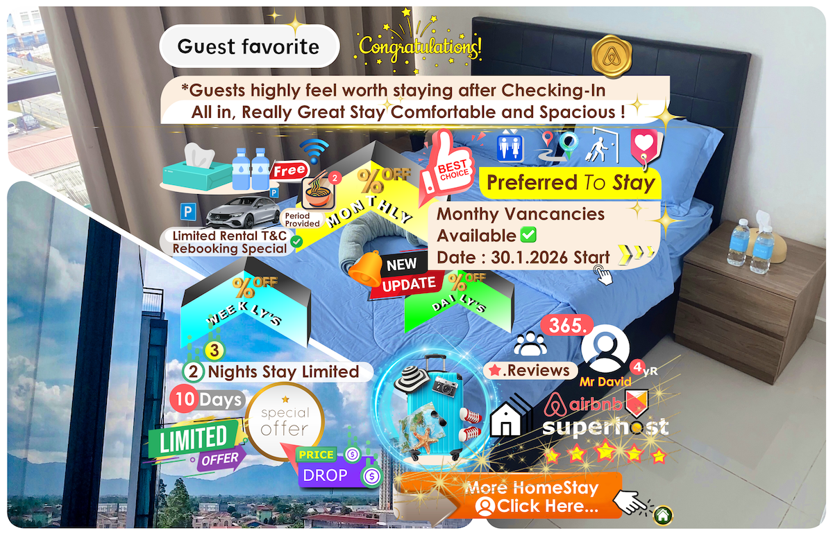 Lupakan kebimbangan di ruang penginapan gaya muji yang luas dan tenang ini di tingkat 12. ✅Langit tinggi yang unik & indah, matahari terbenam, pemandangan bandar & tempat yang tenang. ✅Katil paling selesa yang dipilih sendiri yang tidak dapat disediakan oleh homestay lain. ✅Penginapan santai yang menyeronokkan. ✅10 minit memandu ke bandar. ✅15 minit memandu ke vivacit ❗Sila buat pertanyaan untuk tempat letak kereta jika anda memerlukannya kerana kami mempunyai kuota terhad setiap bulan. Untuk tujuan keselamatan. Gambar kad pengenalan anda diperlukan.