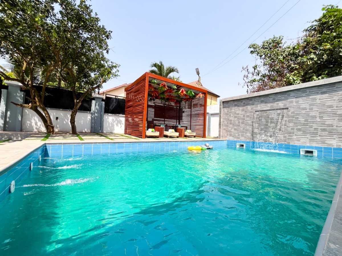 Bawa seluruh kru! Apartmen 2 bilik tidur kami yang luas sesuai untuk keseronokan keluarga, dengan ruang yang luas untuk berehat dan bermain. Selain itu, anda hanya 5 minit berjalan kaki dari Kumasi City Mall, memudahkan anda membeli-belah, makan dan menikmati yang terbaik di bandar ini.