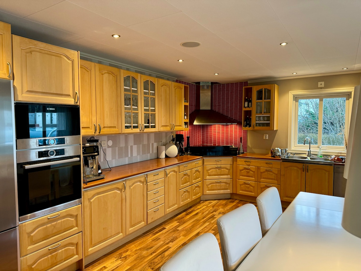 Rumah yang baru diubahsuai seluas 180 m2 di Kyrkesund dengan pemandangan laut panorama. 11 katil, kolam renang dalaman dan sauna. Rumah terbaik dan terletak 100 meter dari laut. Kolam renang yang indah di bilik yang baru diubahsuai (80 m2) dengan sauna dan pancuran mandi. Balkoni yang indah dengan pemandangan laut ajaib di ufuk. Kedua-dua bilik mandi baru diubahsuai . Rumah yang sesuai untuk dua keluarga, pengalaman alam semula jadi yang indah. Pengemasan, cadar dan tuala disediakan sebagai perkhidmatan.