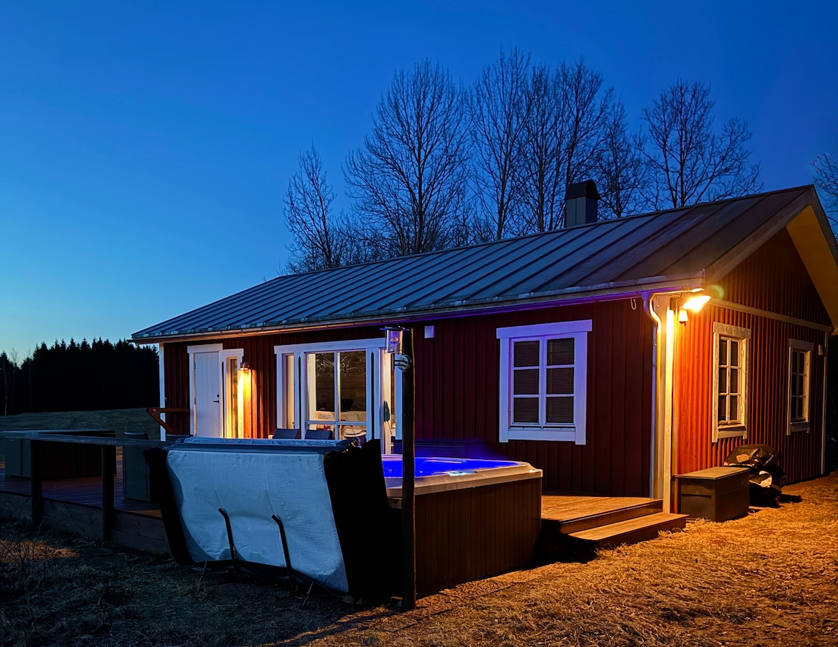Baru dibina 2021 rumah balak ini adalah tempat tinggal eksklusif yang hebat, lokasi persendirian, pemandangan tasik, hutan dan padang yang menakjubkan. Banyak aktiviti. Tempat ini dicipta untuk penggemar aktiviti atau untuk percutian santai. Nikmati cadar yang dicuci sejuk dan tuala yang baru dicuci. Wifi. Nikmati pendiangan di dalam, ruang tamu yang luas di dalam rumah atau berehat di teres yang hebat dan mandi di SPA luar yang mewah. Sesuai untuk mendaki, berbasikal, menunggang, memancing dan bermain golf. Rosenhult dot se