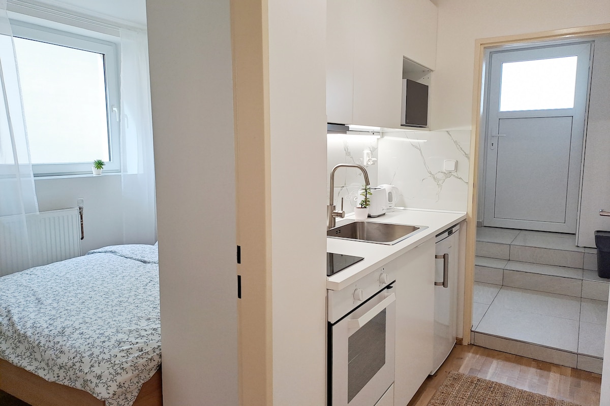 Discover the charm of modern living in our designer studio at the Hagibor complex! Enjoy the comfort of home with a fully equipped kitchen, Nespresso coffee maker, and relaxing book or Netflix evenings. With a balcony, garage parking, and fast internet, it's an oasis of calm in the bustling city. Just a short walk from Želivského metro station on the green line, you're moments away from the historic city center. The perfect place for your urban adventure!:-)