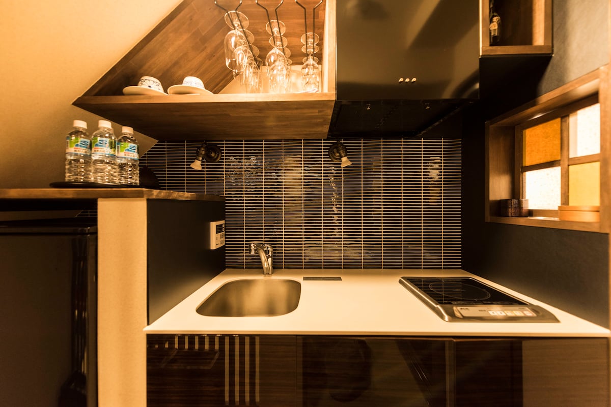 Kyomachiya Private Lodging "Takasegawa Shichijo" adalah kyomachiya berusia 115 tahun yang telah diubah suai sepenuhnya. Kyomachiya, yang membentuk pemandangan indah Kyoto, telah diubah suai menjadi bangunan dengan prestasi kedap udara dan penebat haba yang tinggi supaya anda boleh meluangkan masa yang selesa pada musim panas yang lembap dan musim sejuk yang unik di Kyoto sambil mengekalkan struktur asal. Dari bilik gaya Jepun di tingkat satu, anda boleh melihat taman tsubo (taman yang menuju ke bilik teh) dengan imej "roji". Selain itu, kami telah menyediakan sofa di koridor supaya anda boleh berehat dan menikmati pemandangan taman tsubo. Pada waktu petang, anda boleh meluangkan masa santai sambil melihat taman tsubo yang diterangi. Terdapat 2 bilik tidur di tingkat 2, satu dengan 2 katil single dan satu dengan 1 katil double. Jika terdapat 5 atau lebih tetamu, kami boleh menyediakan futon di bilik gaya Jepun di tingkat 1 dan menggunakannya sebagai bilik tidur, walaupun ia agak menyusahkan. Dapur dilengkapi dengan peralatan memasak dan pinggan mangkuk untuk memasak ringkas.