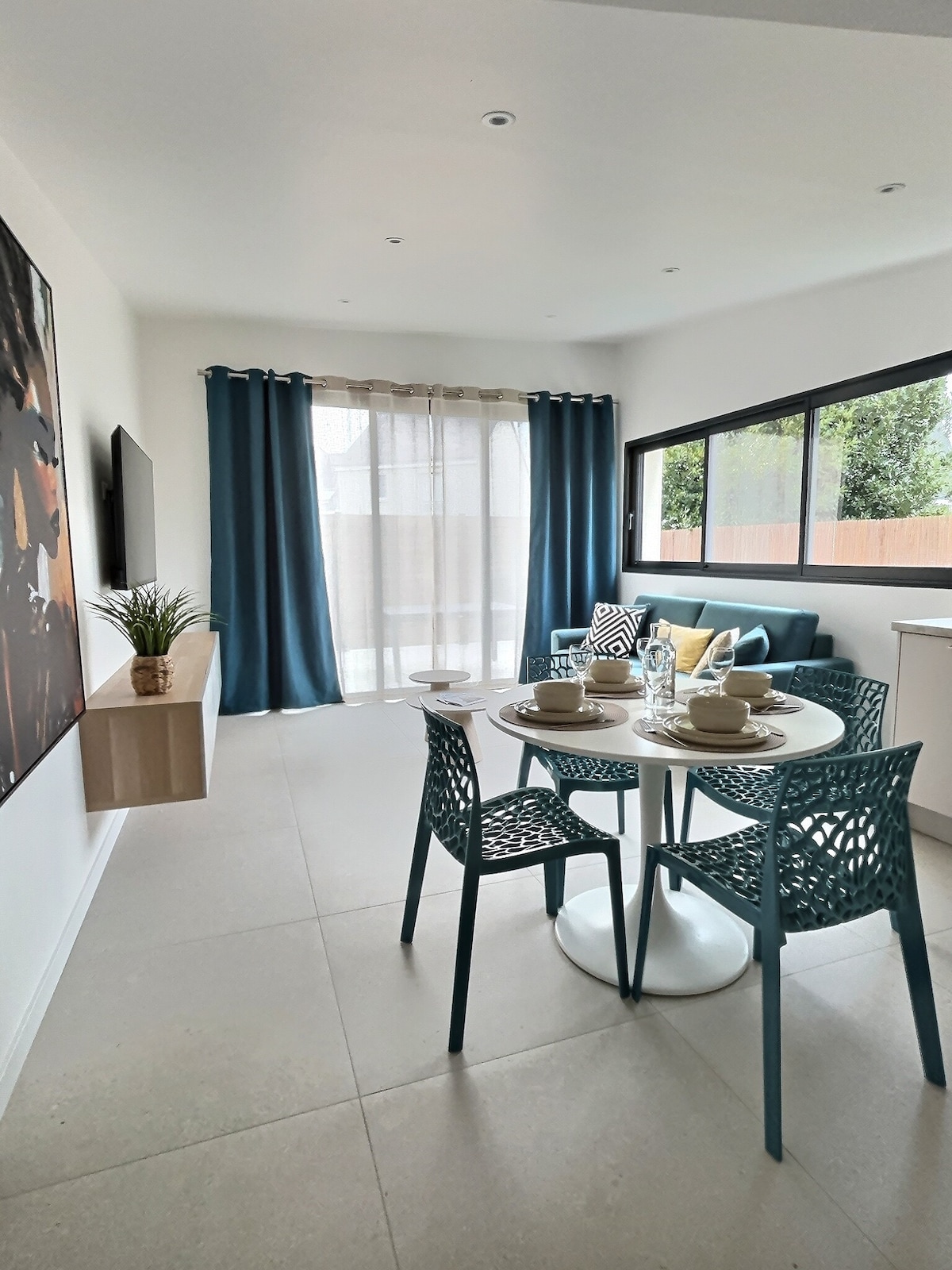 Apartmen MENGHADAP LAUT, terletak di tengah-tengah Teluk, antara Avenue de Gaulle dan Avenue Lajarrige. Bina semula, depan pantai. Perumahan seluas 85m² sangat menyenangkan dengan citarasa moden dan garisan yang bersih. Tiga bilik tidur (satu katil double di setiap bilik) termasuk suite utama yang sangat menyenangkan. Dapur terbuka ke ruang tamu seluas 40m² (mesin basuh pinggan mangkuk, ketuhar, pinggan induksi, peti sejuk). Dua balkoni di ruang tamu. Anda boleh makan tengah hari di hadapan laut. Pasar Avenue Lajarrige pada 300M.