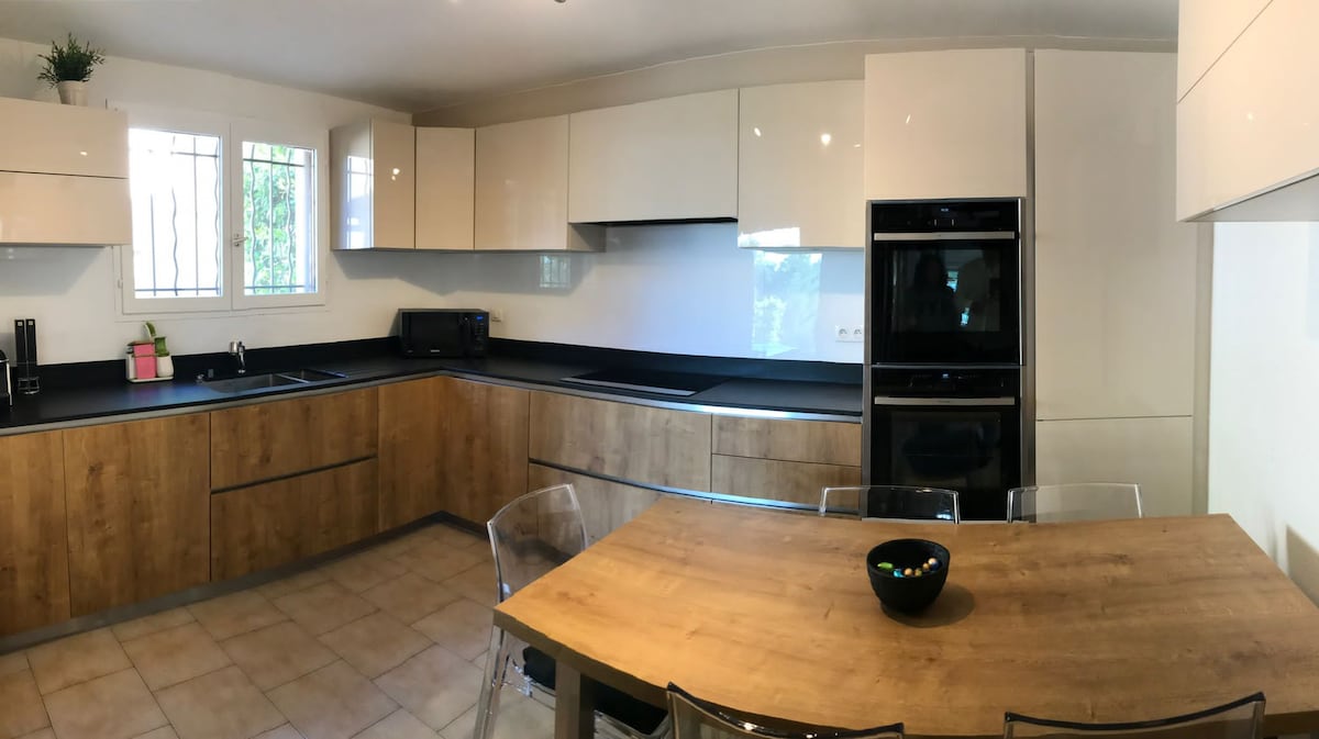 Villa 148m2, kolam renang 6x3m, kawasan tinggi Carnoux di Provence, antara Cassis dan Marseille, berhampiran calanques. Ketenangan mutlak Kolam peribadi, katil matahari, payung 3 teres dengan meja dan kerusi. Barbeku Dapur dilengkapi dengan semua peralatan kemudahan: mesin basuh pinggan mangkuk, mesin basuh, mesin pengering, seterika dan papan seterika, mesin pembuat kopi... 1 bilik tidur dengan katil kelamin, 1 bilik tidur dengan 2 katil kecil, 1 katil sofa, bilik mandi dengan pancuran mandi, tandas berasingan. Cadar dan tuala disediakan. Kerusi tinggi, katil, tab mandi bayi