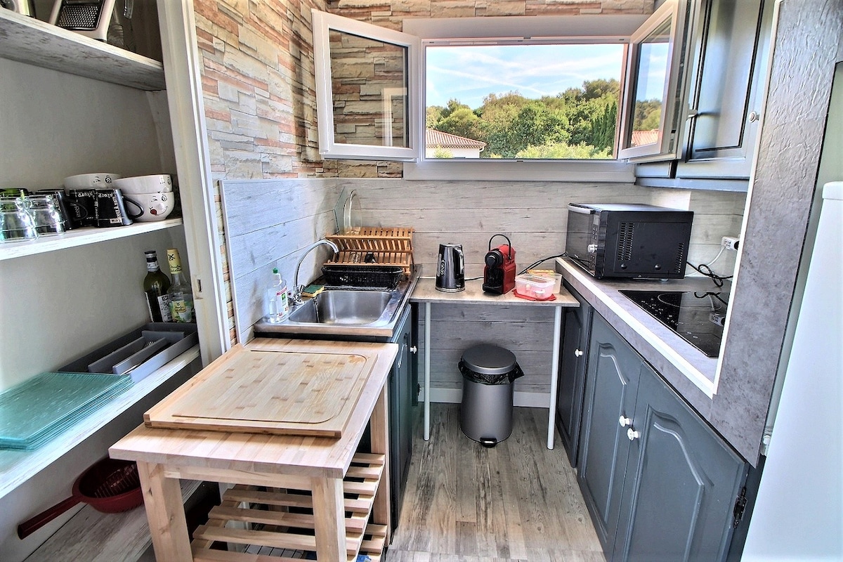 Logement cosy et lumineux de 35 m² avec parking gratuit privé. Séjour composé d'un coin repas avec table 4/6 personnes et 2 lits superposés de 90 x 190. 1 chambre avec lit de 140 x 190 et grande armoire de rangement, 1 salle d'eau avec machine à laver, cuisine équipée et tous les équipements pour vous préparer des petits plats, balcon à vivre avec vue sur la végétation et la mer.
