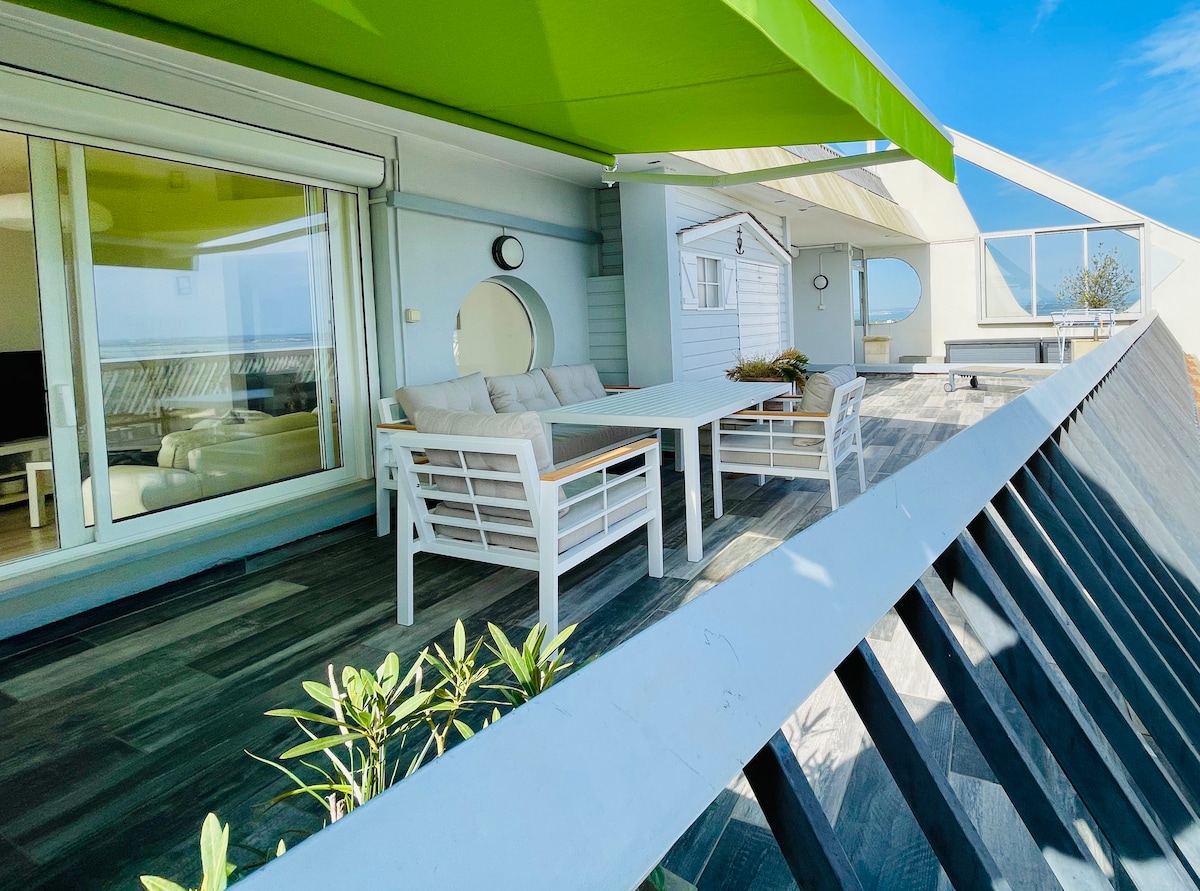 ⭐ Terokai penginapan yang indah dan dihiasi dengan menarik ini, dengan lokasi geografinya yang luar biasa, pemandangan lautnya yang menakjubkan dan teresnya yang indah sesuai untuk menyaksikan matahari terbenam di atas biru yang indah 🌄 ⭐ Cukup untuk menjadikan penginapan anda dengan keluarga atau rakan-rakan satu pengalaman yang tidak dapat dilupakan ☑️ Akses 🏖️ terus ke pantai, kolam renang berkongsi bumbung kediaman, perkhidmatan berkualiti menjadikannya tempat untuk percutian masa depan anda ⭐⭐⭐ Bermimpi.., bayangkan.., tempah segera!