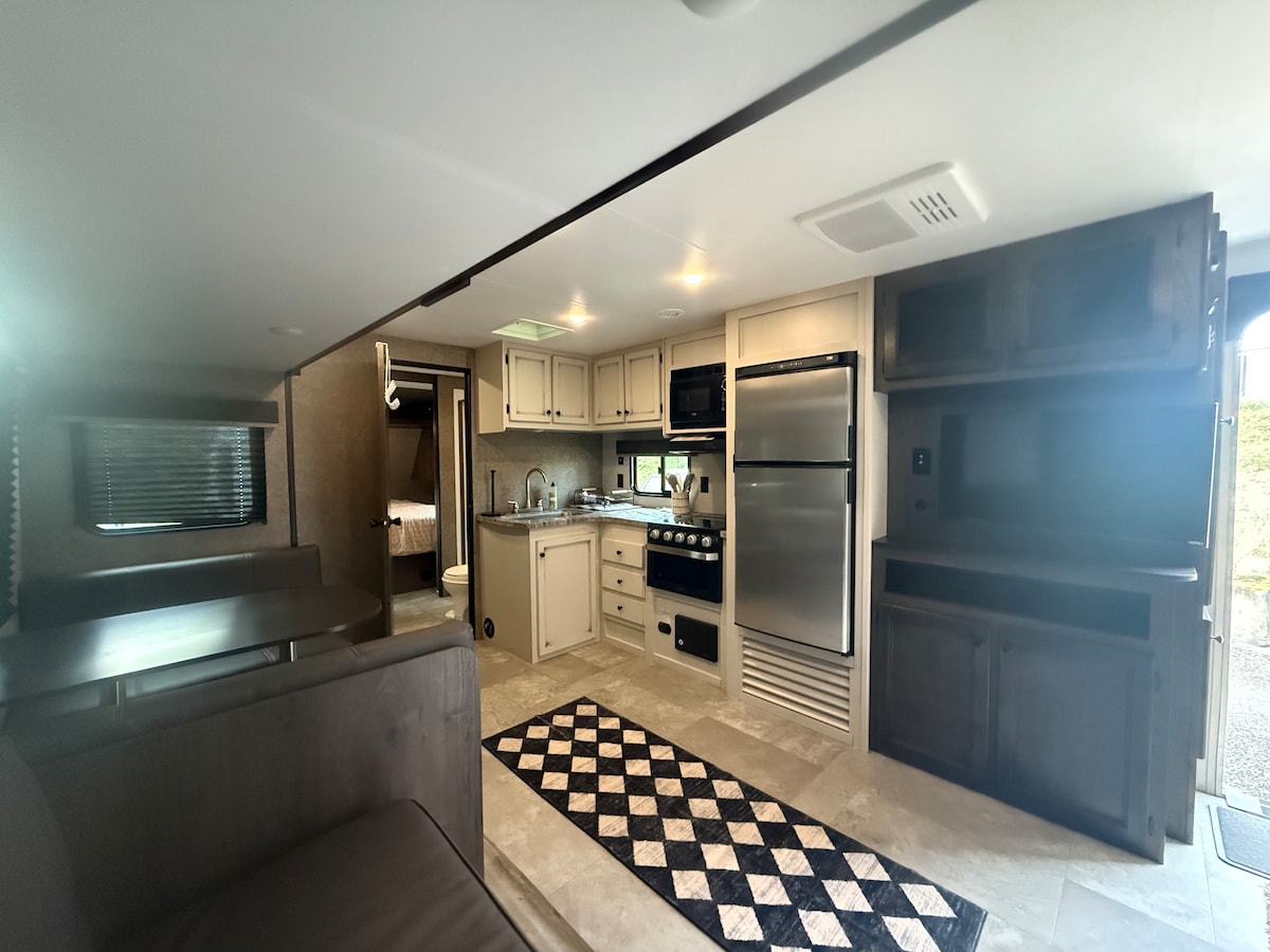Studio terletak di pusat bandar Puyallup, di atas garaj. Unit berhawa dingin termasuk dapur penuh (dapur, peti sejuk, dan mesin basuh pinggan mangkuk) dengan pembuat kopi sajian tunggal, bilik mandi peribadi dengan lantai jubin batu tulis, dan almari utiliti kecil dengan mesin basuh dan pengering. TV 32", pemain Blue-Ray/DVD, WiFi, dan lampu meja sisi katil dengan port USB. Empangan kuasa kulit berbaring dengan rehat kepala berkuasa yang juga mempunyai port usb di sebelah. Sangat dekat dengan laluan bas, dan Washington State Fair.