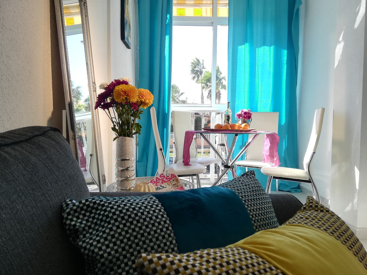 Apartmen yang baru diubahsuai, sangat selesa dan cerah. - Barisan pertama pantai Los Locos - Lokasi yang sangat baik: segala-galanya berhampiran persiaran pantai, pasar raya, farmasi, restoran, kedai. - WIFI (100Mb) & Netflix - Penyaman udara - Perabot baru, reka bentuk dalaman - 1 katil dengan tilam queen baru (160 cm) dan satu katil single (katil kerusi lengan). - Bilik mandi yang baru diubahsuai dengan pancuran mandi - Lif - Balkoni dengan pemandangan desa