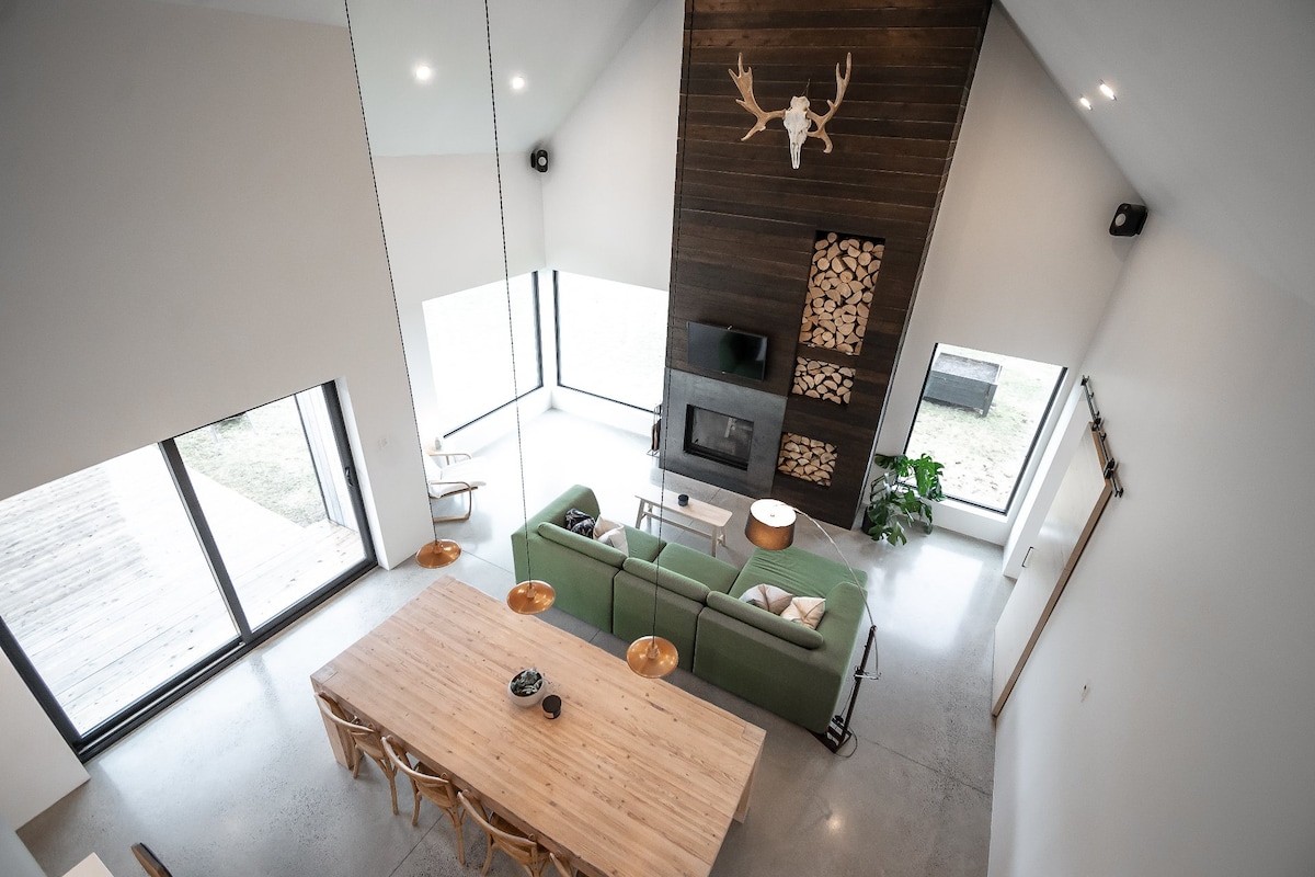 Expérience thermale privée face au fleuve — spa 4 saisons & sauna Séjournez sur un cap rocheux avec vue spectaculaire sur le fleuve. Profitez d’un spa extérieur ouvert toute l’année et d’un sauna finlandais dans un environnement calme et intime. Chalet pour jusqu’à 6 personnes avec 3 chambres confortables, cuisine équipée et ambiance scandinave chaleureuse. Accès direct à la rive, panoramas exceptionnels et tranquillité absolue. Nous acceptons les chiens!