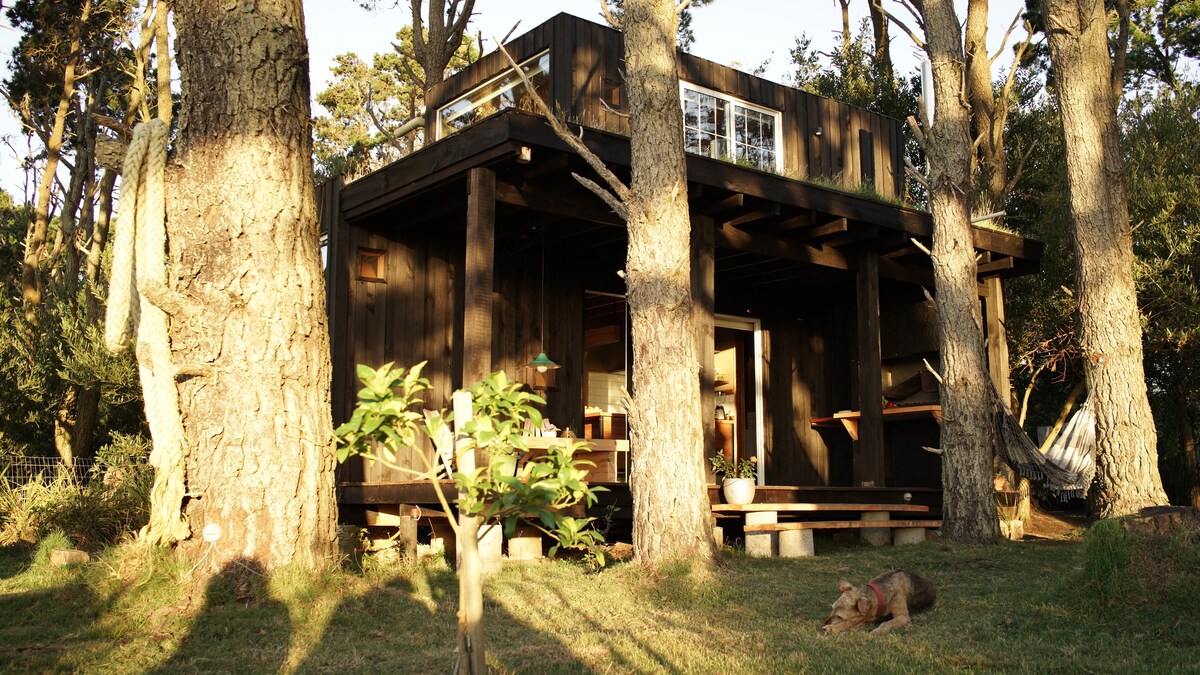 Biri-biri hitam, rumah kecil yang terletak di hutan pain maritim Santa Isabel,dengan tingkap besar untuk melihat matahari terbenam terbaik yang ditawarkan oleh ufuk. Bumbung hijau yang boleh berjalan kaki membawa anda ke kawasan desa di bawah kaki anda. Selesai Disember 29, 2019