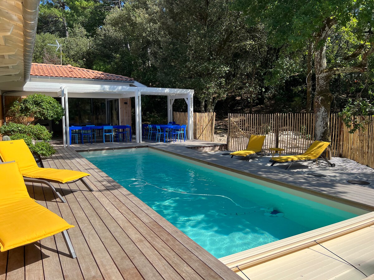 Selamat datang ke rumah saya di La Teste de Buch. Anda akan menginap di rumah Arcachon yang telah diubahsuai, dengan ruang tambahan moden. Ia dilengkapi perabot dan kelengkapan dengan penuh perhatian dan kasih sayang! Pada tahun 2026, parket baharu, permaidani baharu ☀️ Taman, teres dan kolam renang (ditutup pada musim sejuk) membolehkan anda menikmati aktiviti luar di kawasan kediaman yang tenang. Terletak di tengah-tengah bandar, pasar, restoran dan kedai hanya 5 minit berjalan kaki. Stesen kereta api dalam masa 15 minit.