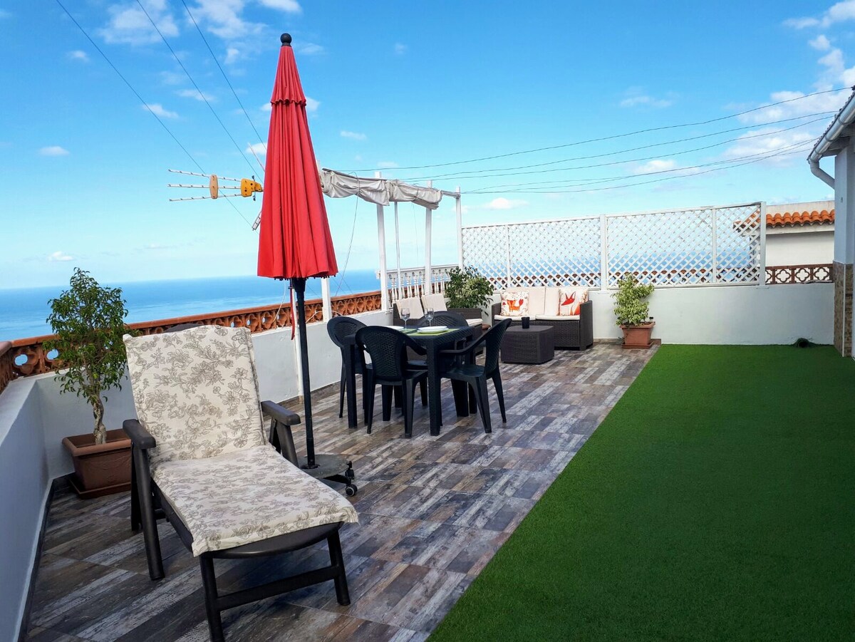 Apartamento con una vista privilegiada sobre el mar y el Teide. Los dueños brindan un trato cordial una decoración funcional y luminosa detalles artísticos. Salón con sat t.v. wifi , una kitchenette con 2 placas de inducción, microondas ,tostadora, kettle ,cafeteras. Cuarto de baño renovado con ducha, secador de pelo y albornoces. Un dormitorio espacioso en la primera planta Terraza individual amueblada con vistas espectaculares