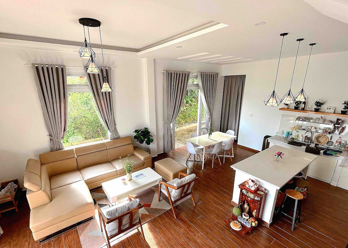 Nama vila: Mountain Nest Dalat - Vila ini berkeluasan sehingga 1000m2, mempunyai 4 bilik tidur, setiap bilik tidur mempunyai 2 katil kelamin besar. Di samping itu, ruang tamu mempunyai sofa dan 1 katil double, beranda juga mempunyai kawasan perkhemahan luar, dapur lengkap dan peralatan dapur lengkap. Dikelilingi taman yang indah dan tempat parti BBQ yang menghadap ke arah pergunungan, perburuan awan yang selesa dan menarik