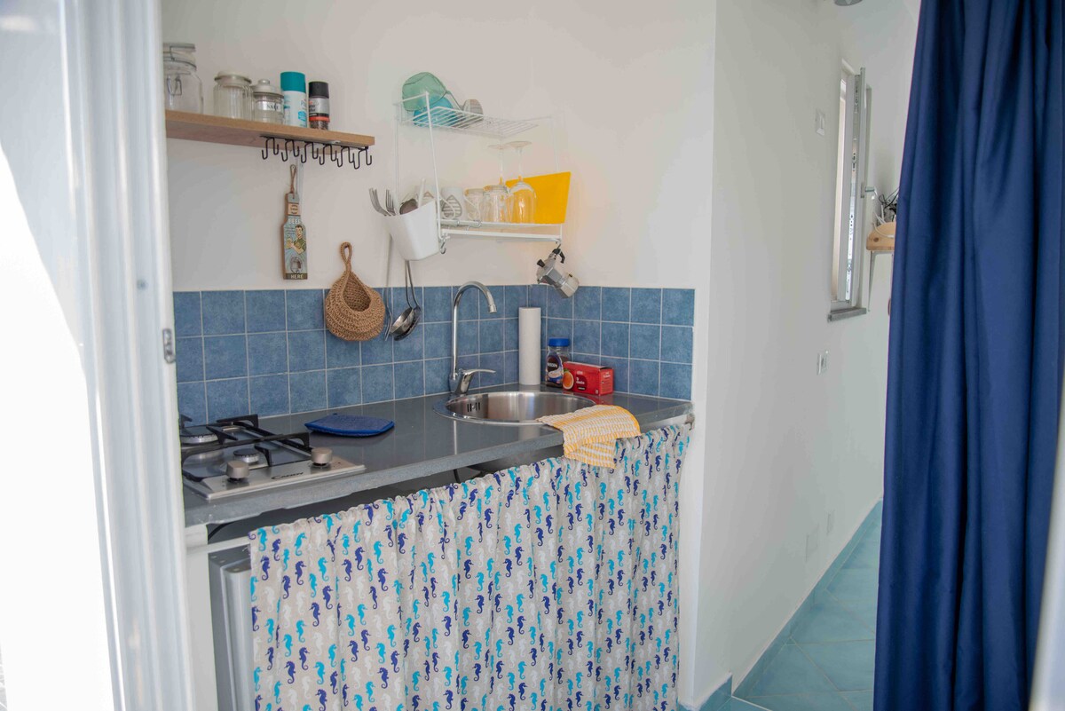 "CASA DI Nestore", adalah studio 27 m² di tingkat bawah, dilengkapi dengan semua keselesaan, perabot berfungsi, selesa dan cantik, dapur kecil, serba lengkap, menggantikan perkhidmatan sarapan dan membenarkan penyediaan makanan secara automatik; bilik mandi mempunyai pancuran mandi dan mesin basuh. Jubin lantai dan pelindung percikan dapur telah dicat dengan tangan oleh pemilik. Terdapat parkir percuma untuk motosikal, manakala untuk kereta terdapat tempat letak kereta pada 200 mt.;