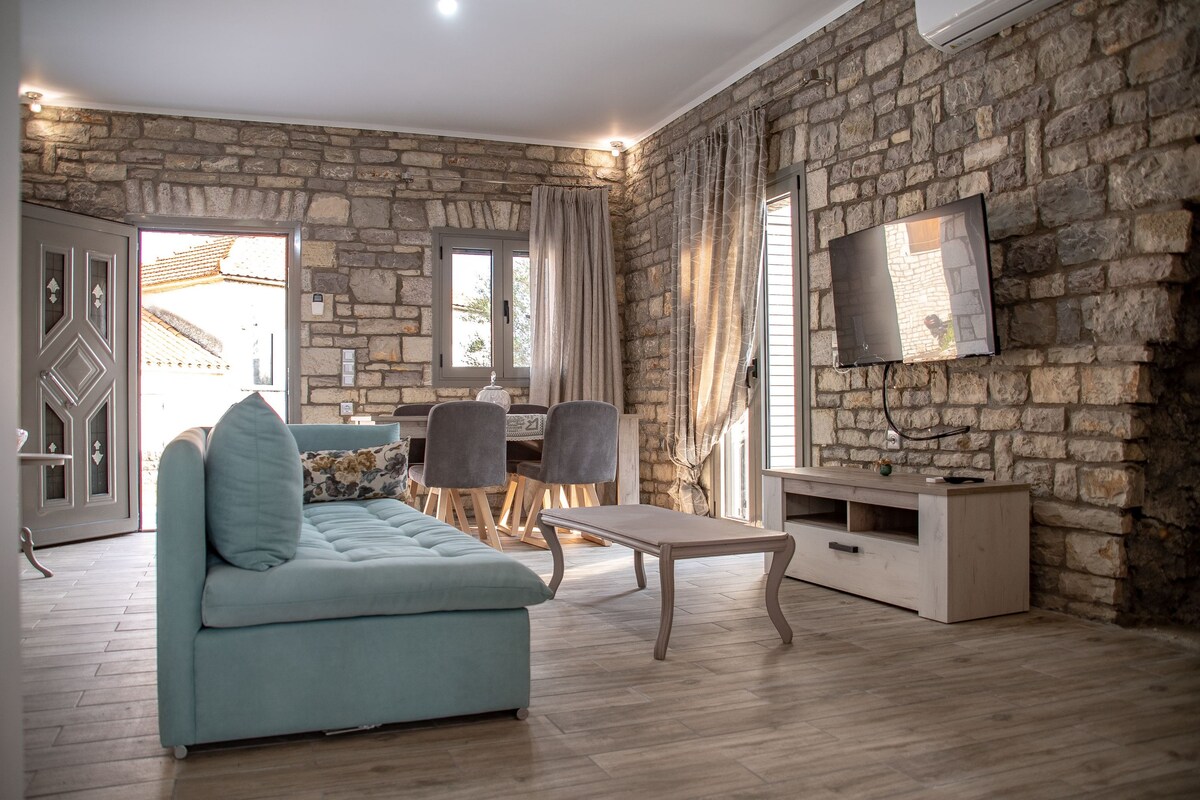Bangunan tradisional dengan lengkungan batu sebenar, dapur moden, pancuran mandi besar dengan mekanisme urut. Ia boleh menampung sehingga 5 orang. Mempunyai tempat letak kereta persendirian dan terletak di dalam penempatan tradisional Finikis. Dalam masa 10-15 minit terdapat banyak pantai dan kawasan pendakian yang tersedia untuk lawatan ke destinasi yang indah (pantai unik, gunung-ganang, arkeologi, tapak bersejarah). Sewa perkhidmatan kereta.