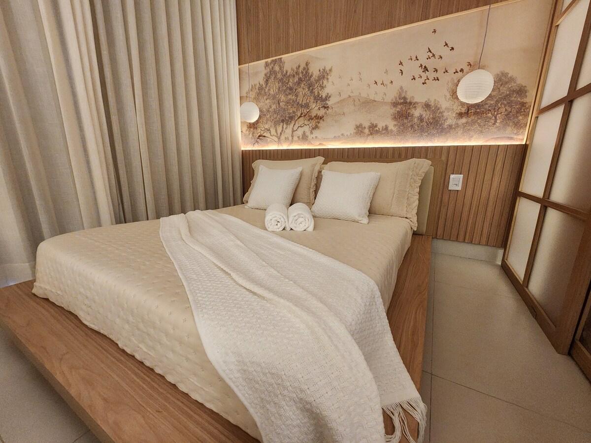 Apartmen di Life Resort, di hadapan Tasik Paranoá, taman dan kolam renang, dihiasi untuk kesejahteraan tetamu, dengan perabot baru, katil queen, bar mini, tv 50", pembuat kopi Nespresso, penapis dengan air ais, almari dan sokongan untuk beg pakaian, seterika, pengering rambut, katil bayi yang boleh diturunkan (atas permintaan), meja solek, ketuhar gelombang mikro, pinggan mangkuk, gelas, peralatan makan, periuk dan peralatan. Percuma: sabun mini, syampu dan perapi, cadar katil dan mandi, produk pembersihan dan WiFi.