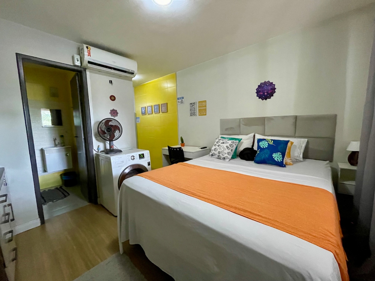 Hayati gaya di tempat yang tenang dan terletak dengan baik ini. Unit "Praiana" adalah tempatnya dengan gaya, ketenangan dan lokasi yang sempurna di Brasilia. Ia terletak di Pelan Perintis dan hanya beberapa langkah dari Pasaraya, restoran, farmasi 24 jam, kedai roti, lounge, kafeteria. Kami menyediakan mesin basuh dan pengering di unit. Ia ruang KECIL (18 m²) yang mempunyai semua yang anda perlukan. Dapur lengkap, pengering rambut, seterika dan hiasan unik. Dihiasi mengikut reka bentuk!