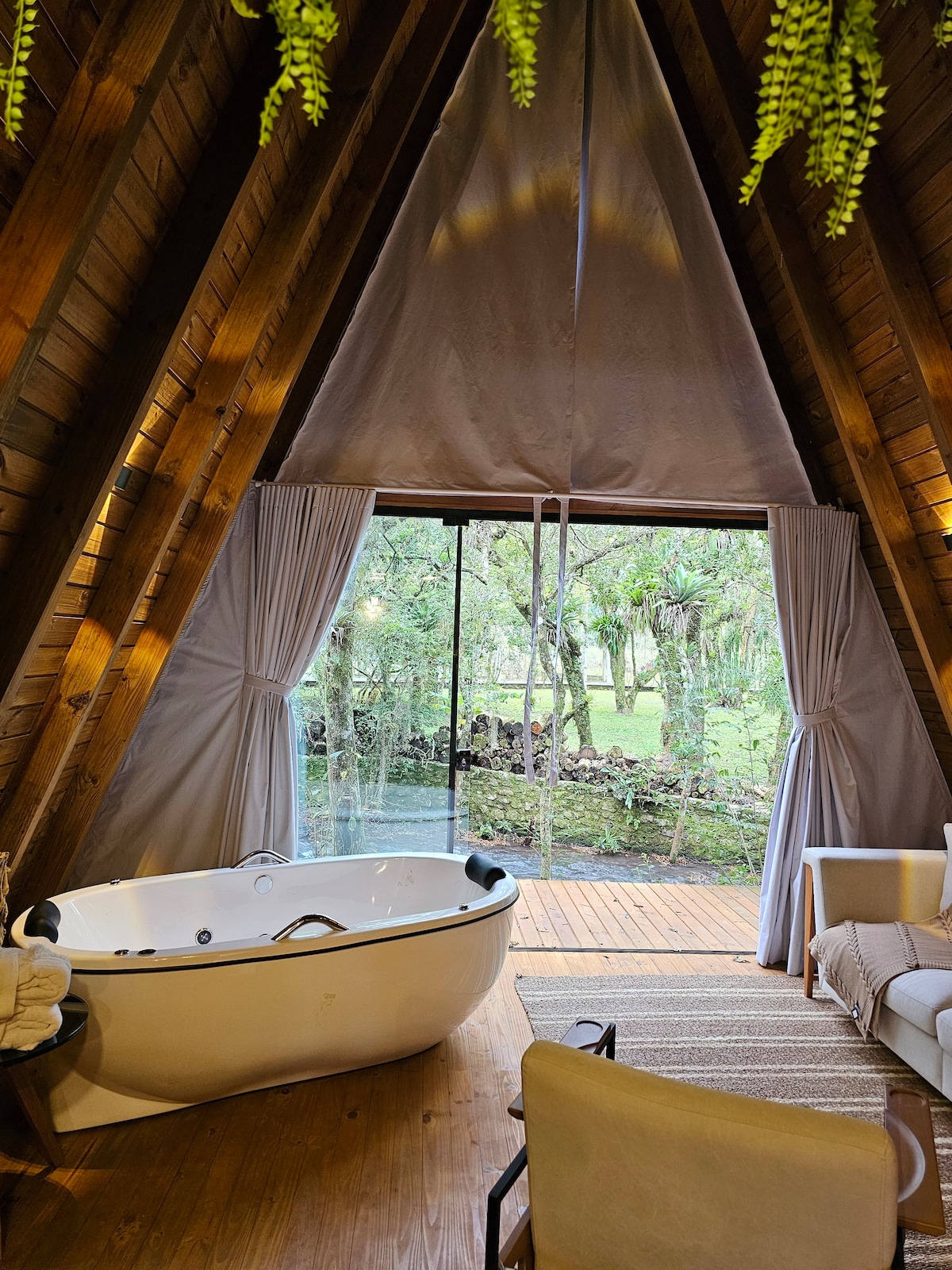 The Forest Immersion and experience. Tempat yang ideal untuk menjauhkan diri daripada rutin dan menikmati hari-hari yang luar biasa dalam alam semula jadi. Semuanya direka dengan penuh kasih sayang untuk anda berehat dan memutuskan hubungan di tengah-tengah pemandangan yang menakjubkan di pedalaman Hutan Atlantik. Cabana terletak di bukit Borrussia, 10 minit dari pusat Osório, di kawasan luar bandar yang tidak ramai yang tahu. Oleh kerana ia merupakan kawasan pantai yang juga berhampiran dengan pantai, lagun dan air terjun.