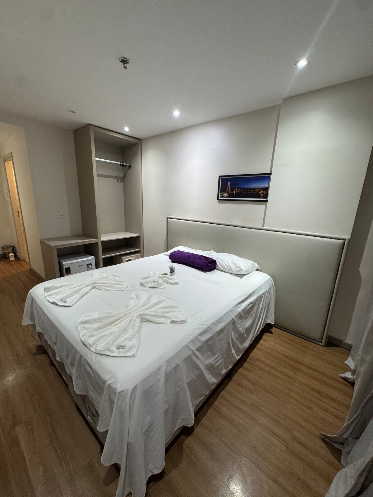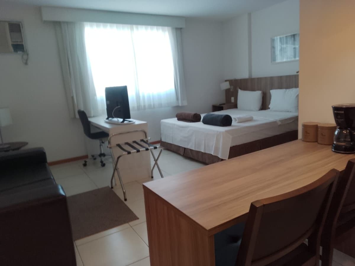 Flat 30m² yang selesa di pusat bandar. Ia berada di hotel dengan pentadbiran persendirian. Wifi di dalam bilik dengan kualiti yang sangat baik. Dapur memasak, pembuat kopi, pembuat sandwic, seterika. Perkakas dapur asas. Anda boleh menikmati sauna kering atau wap. Jacuzzi. Bilik permainan dan kawasan luar yang indah. Jam dari 9 pagi hingga 10 malam Hotel ini mempunyai restoran dan sarapan yang boleh dibayar terus kepada pihak pengurusan Hotel. IG saya @regiane.carvalhooficial