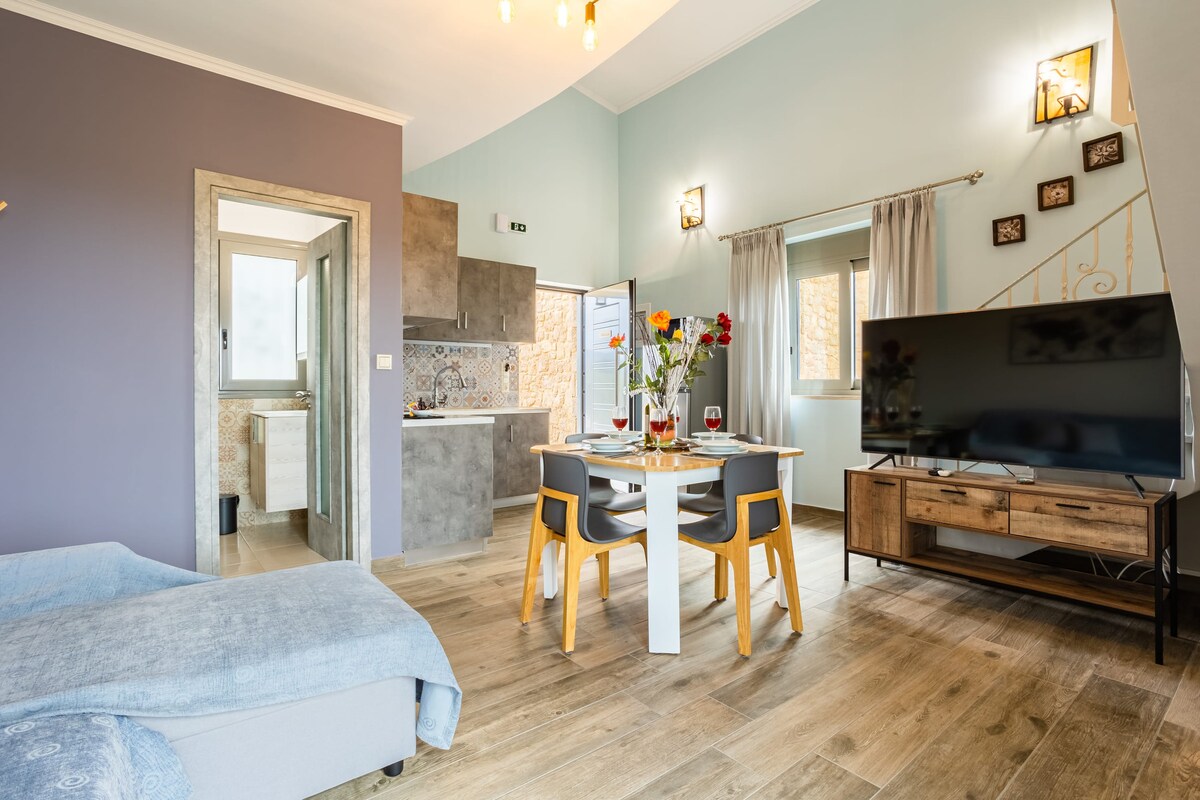 A newly built apartment, with comfortable spaces, nice courtyard with flowers and great views. It overlooks the port of Pylos, the lagoon of Gialova, the beautiful beach of Voidokilia and the Costa Navarino complex. A functionally integrated space, very careful, ideal for 3 people. Fully equipped kitchen, dining room, bedroom and comfortable modern bathroom.
