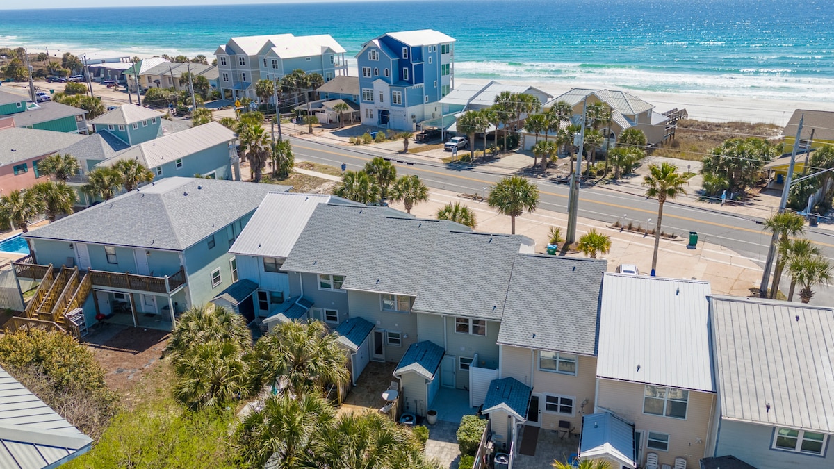 Rumah 3 bilik tidur, 5 bilik mandi yang menakjubkan dengan kolam renang persendirian! 50 ela dari pantai paling putih di Teluk Mexico. Tingkat 1 mempunyai ruang tamu yang luas, meja makan 8 tempat duduk & dapur lengkap. Tingkat 2 mempunyai ruang tamu lain, bar basah dengan sinki + 1/2 bilik mandi, katil dua tingkat terbina dalam & bilik tidur dengan katil king & bilik mandi penuh. Tingkat 3 mempunyai bilik tidur utama dengan katil king, bilik mandi utama persendirian & bilik tidur tetamu lain dengan dua katil queen. Tanya tentang menyewa kedua-dua rumah bandar untuk percutian keluarga besar.