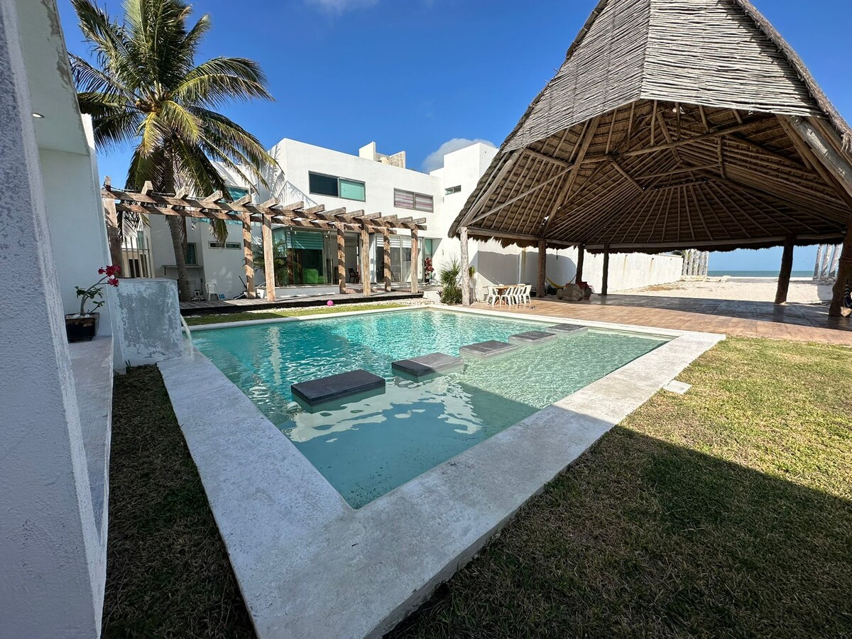 If F A C T U R O... Have fun in this accommodation ideal for families and work, where we focus on maximum cleanliness and guarantee safety, 1 minute from the Mérida ò Villahermosa road and absolutely noise, it has an integral kitchen and grill in 3rd floor and a palapa next to the pool located 30 meters from the house, wifi throughout the house and television in each bedroom with Apple TV.