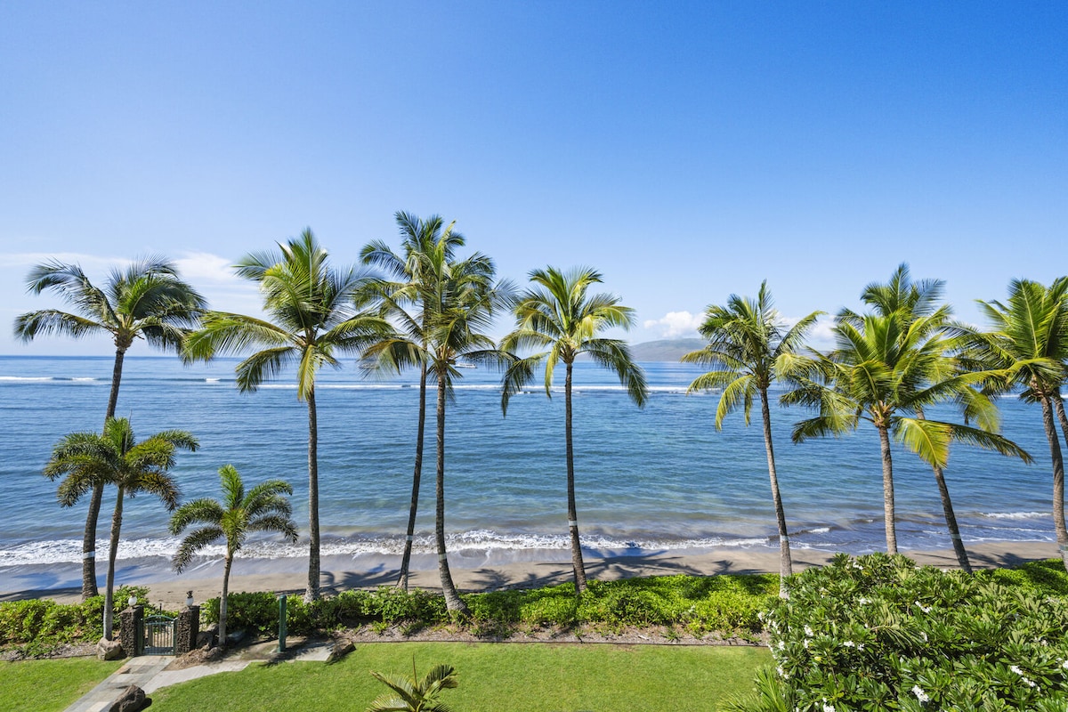 Milik Tempatan dan Beroperasi Kondominium 1BD/2BA dengan lokasi tepi pantai langsung terbaik, pemandangan panorama laut, matahari terbenam, dan melihat ikan paus bermusim. Pemiliknya tiada perbelanjaan untuk mengubahsuai unit ini menjadikannya salah satu unit yang paling baik di seluruh Mahana. Bangun dengan angin tropika yang sejuk dan bunyi garis pantai hanya 50 kaki jauhnya. Tingkap lantai ke siling di ruang tamu dan bilik tidur membawa pemandangan yang menakjubkan dan matahari Maui yang hangat di dalam manakala penyaman udara pusat memastikan anda sejuk di dalam.