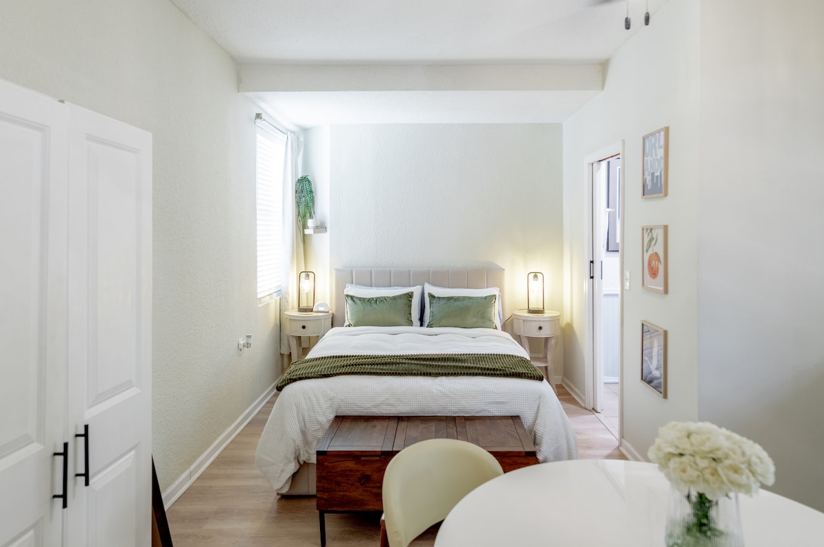 Selamat datang ke The Modern Zen, tempat percutian anda yang tenang di Milk District yang meriah di Orlando. Studio yang direka dengan cantik dan diilhamkan oleh Zen ini bersih, tenang dan dibuat untuk keselesaan. Berehat di katil queen yang selesa, nikmati dapur putih yang kemas dilengkapi dengan keperluan asas, dan berehat di kombinasi tab mandi dan pancuran mandi. Mesin basuh/pengering dalam unit disertakan. Langkah keluar ke halaman belakang dan nikmati tab mandi air panas persendirian di bawah langit Florida — disediakan dengan teliti oleh hos lima bintang untuk penginapan yang sempurna.