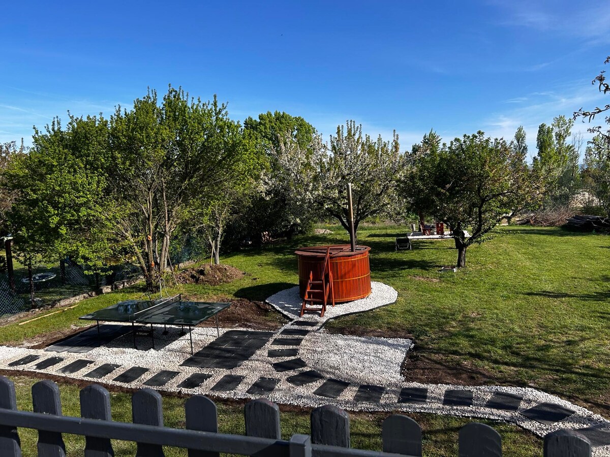 Rumah loteng luar bandar yang diubah suai dengan bergaya berhampiran Tasik Balaton (7 km) untuk sehingga 5 tetamu. Dua bilik tidur, ruang tamu yang luas dengan dapur yang lengkap, tingkap besar menghadap taman dan satu bilik mandi. Persekitaran musim sejuk yang tenang, taman lavender yang berehat di bawah musim, beberapa teres kecil. Wi-Fi pantas di seluruh rumah dan taman, sesuai untuk kerja jarak jauh. Sesuai untuk pasangan, keluarga dan nomad digital yang mencari ketenangan. Mesin basuh disertakan. Sarapan atau makanan tersedia atas permintaan. Mesra kanak-kanak.
