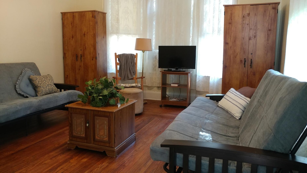 Selamat datang ke tempat persembunyian kecil anda di tengah-tengah Port Dover. Terletak dalam jarak berjalan kaki ke pusat membeli-belah, restoran dan pantai! Unit ini berada di tingkat dua yang menawarkan bilik gaya bujang dengan katil bersaiz queen, dapur kecil yang dilengkapi dengan peti sejuk kecil, ketuhar gelombang mikro, pembuat kopi dan sinki. Bilik mandi persendirian mempunyai pancuran mandi walk-in. Di bawah lorong terdapat kawasan umum dengan ruang untuk membaca atau bermain dan berjalan keluar ke dek belakang. Baru diubahsuai, unit manis ini adalah tempat percutian yang sempurna untuk dua orang!