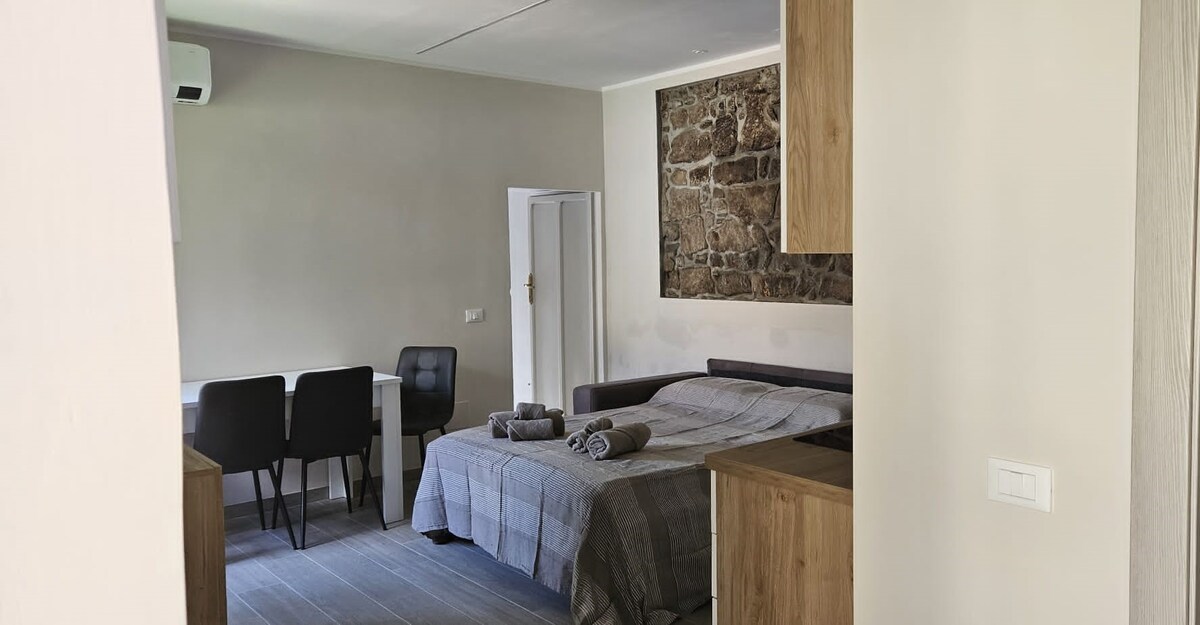 Apartmen studio yang halus baru diubahsuai dan dilengkapi dalam bangunan purba dengan pintu masuk bebas. Apartmen ini terletak pada beberapa meter dari stesen kereta api dan jalan utama Albano Laziale. Sesuai untuk percutian, anda boleh melawat seluruh bandar dengan berjalan kaki. Dilengkapi dengan televisyen, penyaman udara, pemanas bebas, mesin basuh, katil double, almari pakaian, dapur lengkap, ruang makan dan bilik mandi dengan pancuran mandi besar untuk dua orang.