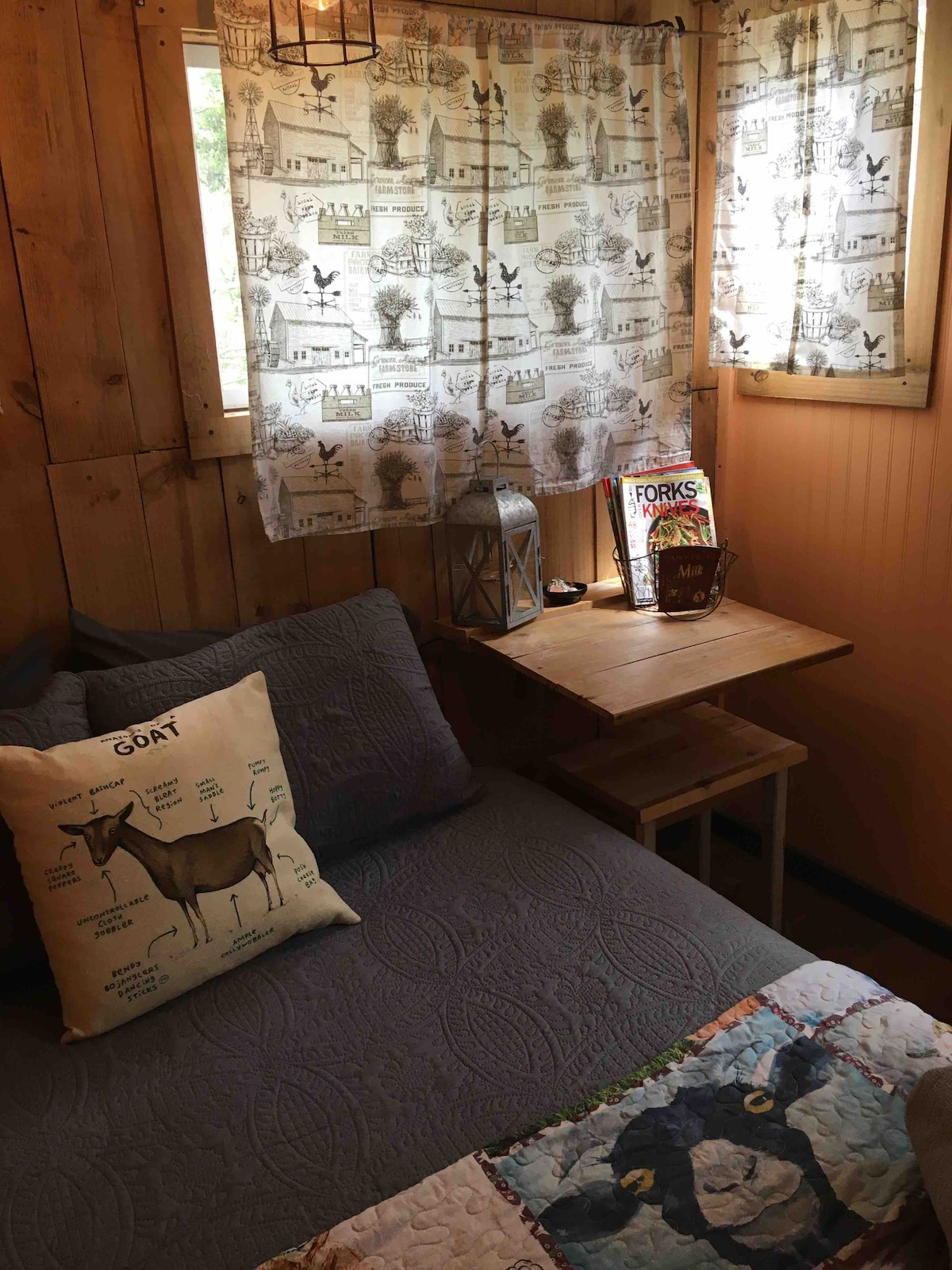 Goat House Farm ialah ladang pendidikan bukan untung 501(c)3. Semua keuntungan disalurkan untuk menyokong program belia dan pendidikan kami. Datang dan hilangkan tekanan dengan memeluk kambing kami. Kumpulan kegembiraan ini dijamin akan membuat anda tersenyum! Kami berhampiran Tallahassee tetapi di kawasan luar bandar, di jalan tanah, tetapi kami berjanji perjalanan itu berbaloi. Berkayak (byo) dan mendaki dengan tenang dari penginapan, serta matahari terbenam yang indah di tasik.