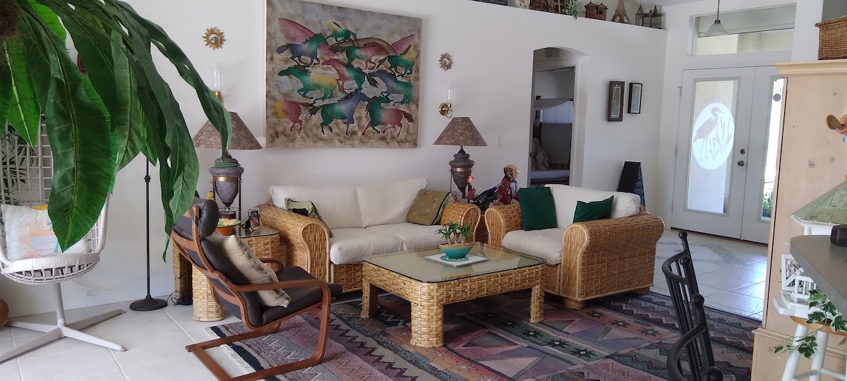 Kami mengalu-alukan anda ke rumah kami yang dihias indah yang menampilkan perabot neutral dan klasik, namun selesa dengan hanya sentuhan hiasan pantai. Sama ada anda peminat golf atau aktiviti luar atau pencinta pantai, anda akan menyukai lokasi pusat North Port dan berdekatan dengan I-75 dan Venice dan Englewood Beach. Terdapat meja untuk bekerja dari jauh dan dapur yang lengkap dan luas. Nikmati memerhati burung, kopi pagi dan minuman petang anda di patio persendirian. Meja makan menawarkan tempat duduk untuk 6 orang.