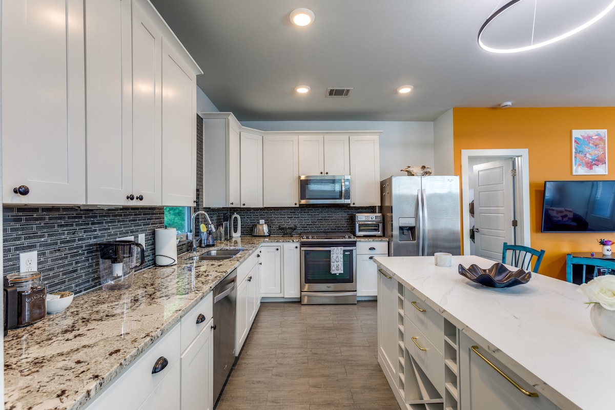 Rumah 5BR/3BA besar di South Austin Baru dikemas kini, 1,892 kaki persegi, boleh tidur 10 orang • 2 suite King • Pejabat khusus dengan meja & WiFi pantas • Dapur lengkap, mesin basuh/pengering, halaman belakang berpagar & teres • 3 bilik mandi penuh Lokasi mudah & kurang daripada 15 minit dari hampir semua tempat: • Lapangan Terbang & Pusat Bandar • Zilker / Mata Air Barton • South Congress • Kampus UT • Tempat letak kereta tepi jalan percuma yang mudah Haiwan peliharaan OK dengan yuran • Tiada parti • Daftar masuk sendiri • Hos tempatan, jawapan pantas - mesej untuk taco dan rekod jejak, kami berharap untuk menjadi hos anda!