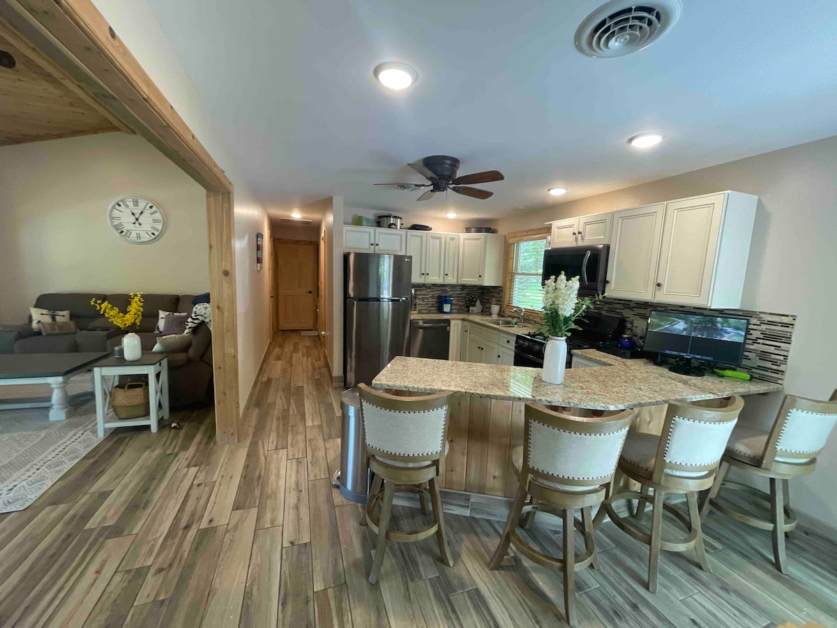 Selamat Datang Tempat Perlindungan! Chalet 3 bilik tidur, 2 bilik mandi yang dikemas kini ini adalah tempat berkumpul keluarga yang sempurna untuk semua musim. Bilik permainan besar yang dilengkapi dengan meja biliard, ping pong, foosball, & tempat duduk yang selesa dengan TV. Penginapan persendirian yang luas dengan buaian rajut, lubang api, ruang patio depan dan belakang dengan meja makan. Laluan masuk pekeliling mudah untuk kereta dan bot. Terletak dengan mudah dengan pelancaran bot awam kurang daripada satu batu. Pulanglah ke katil yang selesa, api yang hangat, dapur yang lengkap, dobi dan ruang kerja.