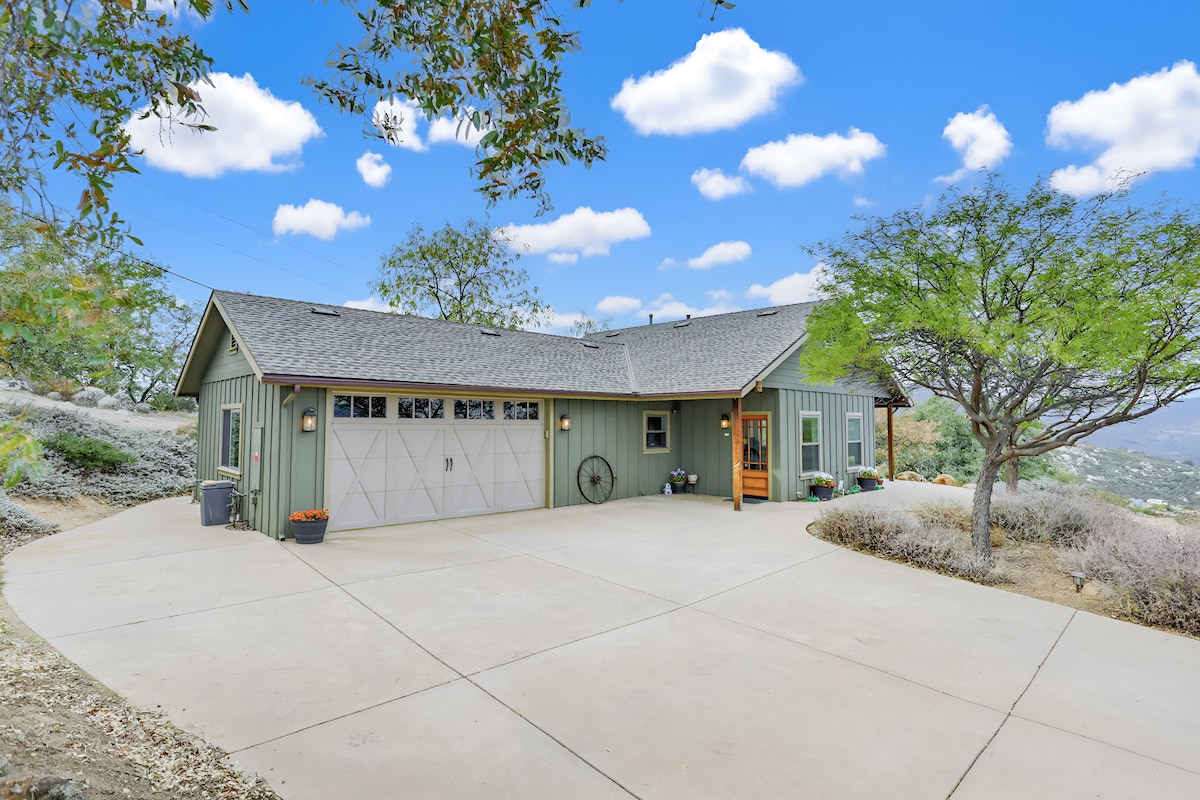 Bercuti ke pergunungan San Diego dan ke ruang tamu persendirian yang damai dan berperabot lengkap dengan banyak ruang untuk bersantai dan menikmati gaya hidup California. Nikmati pemandangan panorama El Capitan dan banjaran gunung Cuyamaca sambil menikmati minuman kegemaran anda di sekitar firepit. California menanti kerana anda boleh bersiar-siar ke timur ke pergunungan dan padang pasir, atau ke barat ke pantai dan pusat membeli-belah. Legoland, Seaworld, dan taman air Sesame Place semuanya dalam jarak memandu yang singkat.