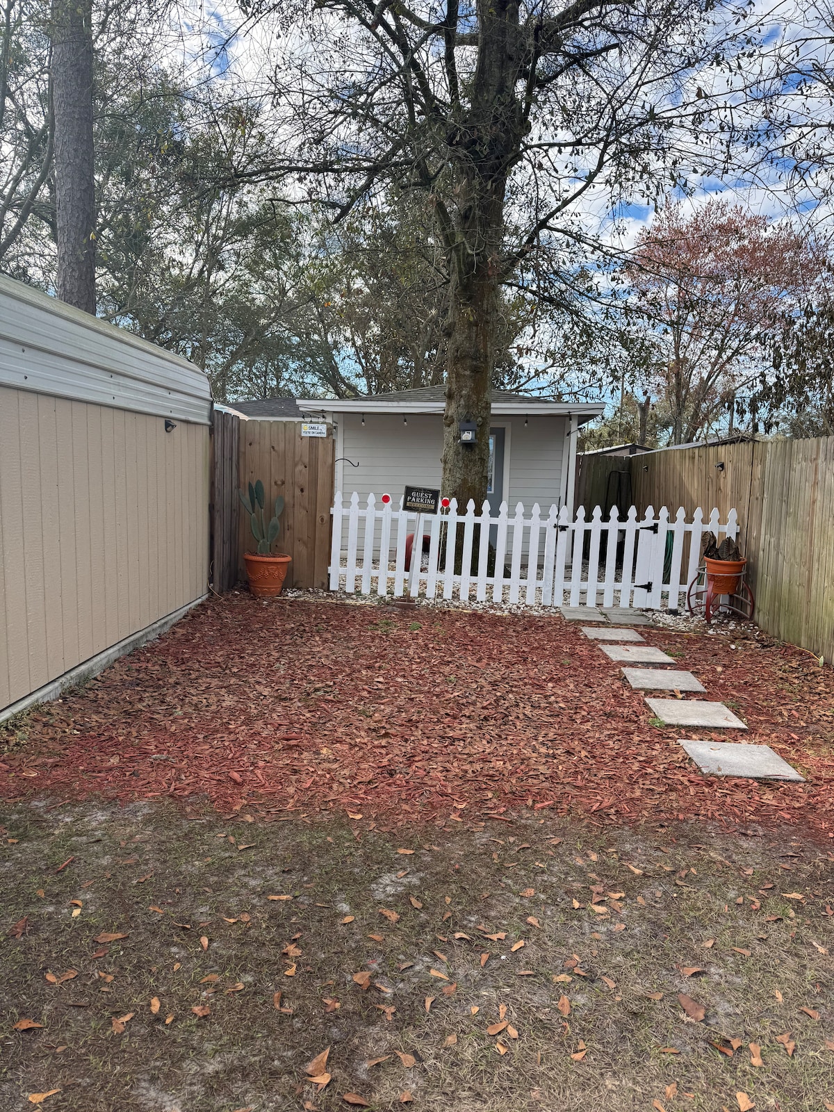 Suite tetamu kami yang kecil, bersih, selesa (kira-kira 220 sq ft) terletak di halaman belakang berpagar kami. Ia terpisah daripada rumah kami dengan pintu masuk persendirian, di kejiranan kediaman yang tenang dan selamat. Ia tidak mewah, tetapi ia ruang yang sesuai untuk meluangkan beberapa hari semasa melawat Jax. Kami menawarkan daftar masuk tanpa kunci dan tempat letak kereta percuma ada di jalan masuk kami. Katil Queen Sealy Posturepedic memberikan keselesaan muktamad. Suite ini mempunyai peti sejuk mini dan ketuhar gelombang mikro untuk makanan ringkas (tiada dapur penuh).