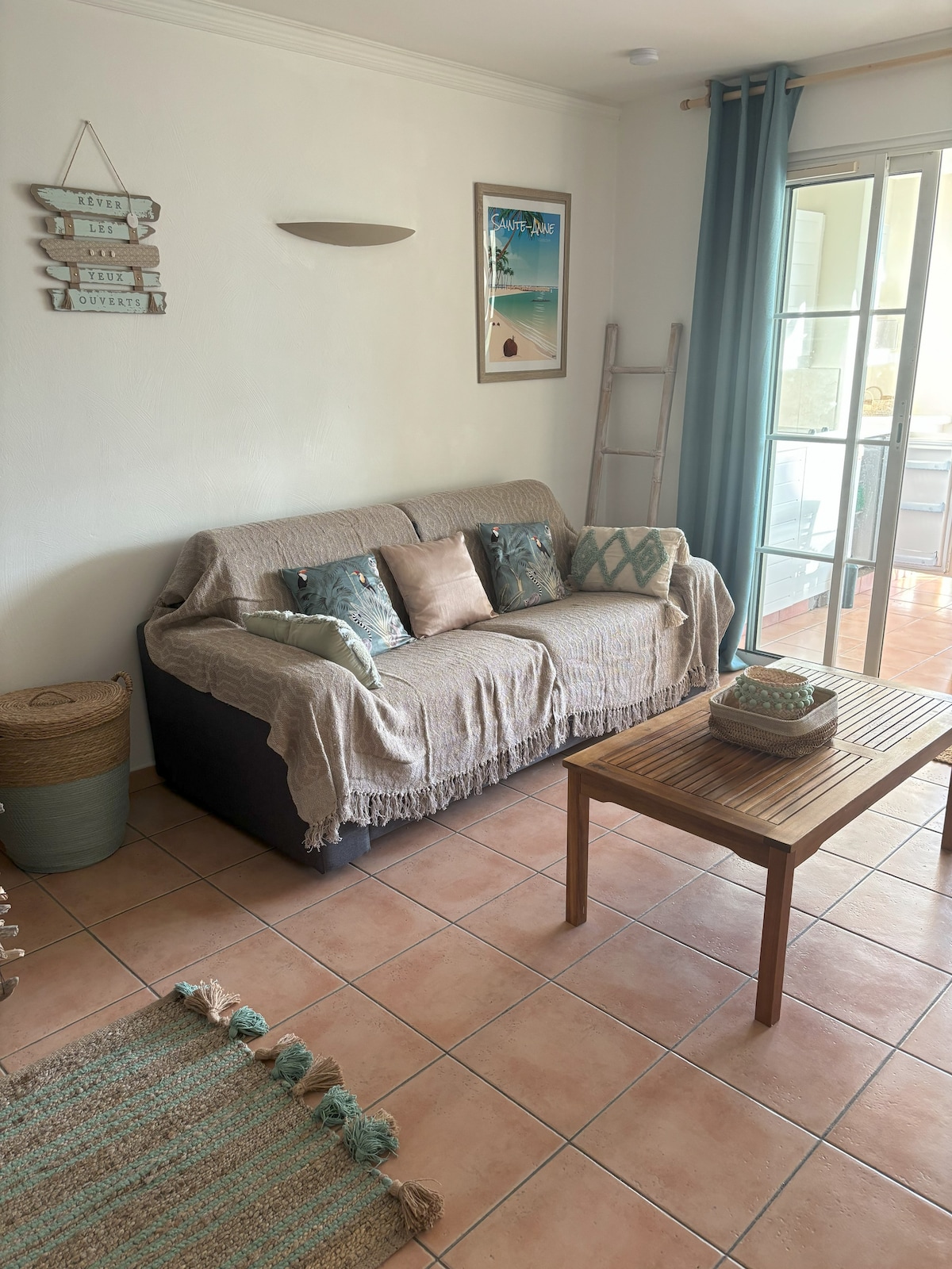 Bersantai di rumah yang tenang dan bergaya ini yang terletak di kampung percutian Sainte Anne . Satu-satunya penginapan pelancong berperabot 4 bintang di kediaman ini. Kami ingin menyediakan dapur yang berperabot dan serba lengkap untuk membolehkan anda memilih untuk makan di sana jika anda mahu . Kami juga boleh menawarkan anda sewaan studio berkomunikasi untuk penginapan keluarga dan mendapat manfaat daripada teres besar yang menghadap laut lebih daripada 20 m²