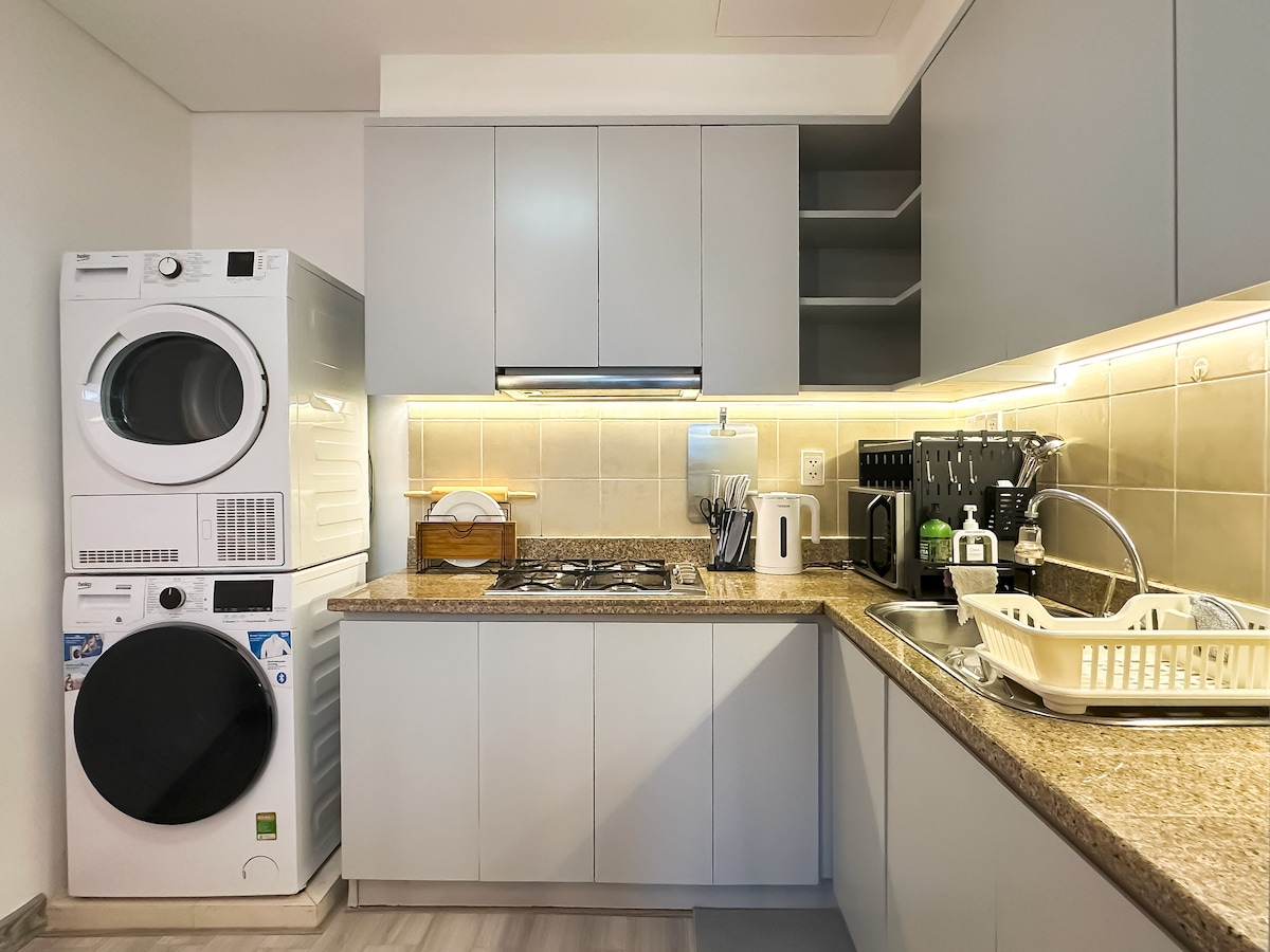 +Apartmen di bangunan Landmark2, bersebelahan Landmark81. +This is Officetel (Office+Hotel) Apartment allow to do Airbnb. +Bilik tidur mempunyai tilam Luxury Memory-Foam, King Size-1m8x2m, sempurna & selesa, sesuai untuk isu sakit belakang. +Terdapat mesin basuh & mesin pengering +Kebersihan, kebersihan adalah keutamaan saya. Cadar dan tuala sentiasa diperbaharui semasa ketibaan. +Terdapat perkhidmatan pembersihan percuma untuk penginapan jangka panjang