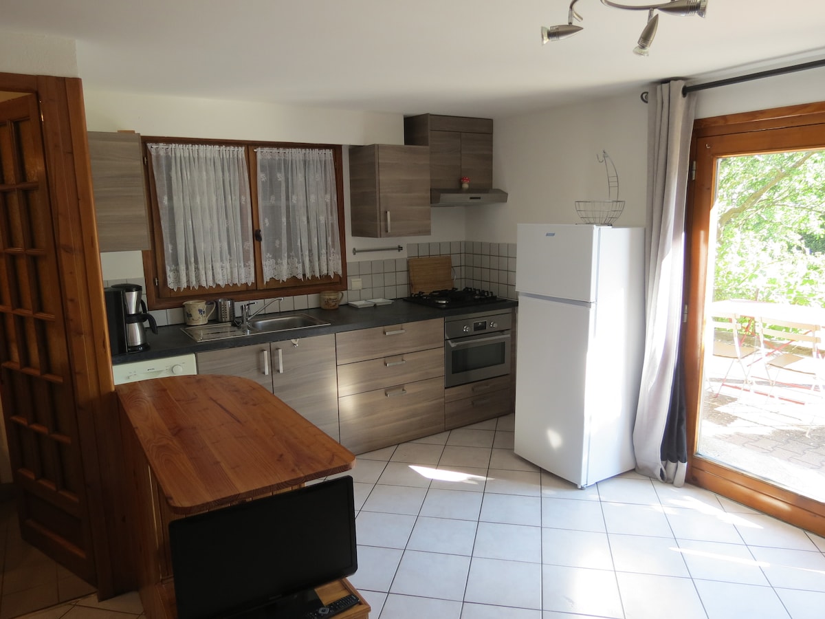 J'habite sur place et vous accueille dans un logement indépendant, classé meublé de tourisme 2* au rez-de-chaussée de ma maison. Vous disposerez d'une petite terrasse abritée en rez-de-jardin, d'une pièce de vie (couchage enfant possible) avec kitchenette (lave-linge/vaisselle)d'une chambre séparée avec lit en 160x200 et coin douche à l'italienne De nombreuses activités alentour : randonnées au départ du village, parapente, cyclisme, baignade et activités nautiques sur le lac d'Annecy à 5 km...