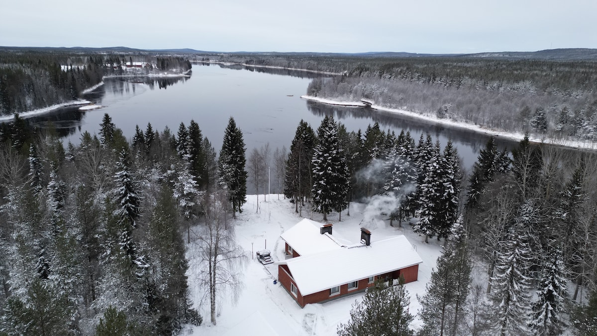 Vila bergaya dengan peralatan rumah. Berjarak 40 minit dari Ylläs. Tapak ini terletak di tebing salah satu sungai salmon terbaik di Eropah. Di seberang sungai terdapat Sweden. Pada petang musim sejuk yang cerah, anda boleh melihat cahaya utara sambil duduk di sofa. Atau apa yang kedengaran seperti duduk di dalam tab mandi air panas dalam senyap sepenuhnya. (tab mandi air panas tidak boleh dilakukan di bawah sifar celcius)