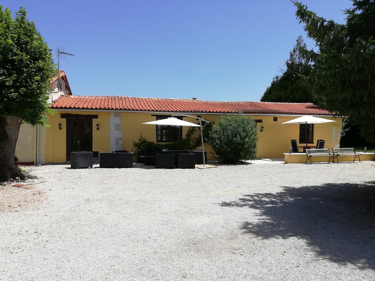 Maison individuelle située dans le Sud Charente à proximité d'Aubeterre Sur Dronne, village touristique, à deux pas de la Dordogne. Traversé par la rivière "La Dronne" le lieu est très agréable et arboré. Le logement est calme et fonctionnel. Il se compose d'une pièce de vie, d'une chambre et d'une salle de bain. A l'extérieur, une terrasse et la pelouse non clôturée, vous attendent pour vous relaxer sur des transats. Un salon de jardin et un barbecue électrique sont à votre disposition.